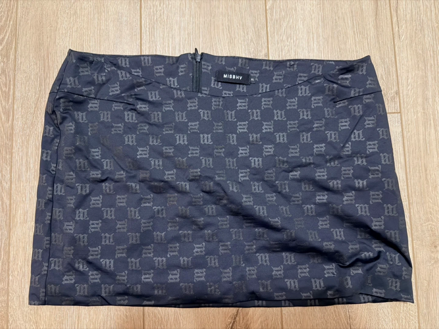 Selling a MISBHV mini skirt in size XL. It features a cool, subtle pattern throughout and is in great condition. Perfect for adding a bit of edge to your wardrobe!