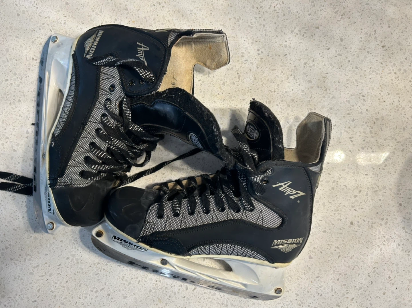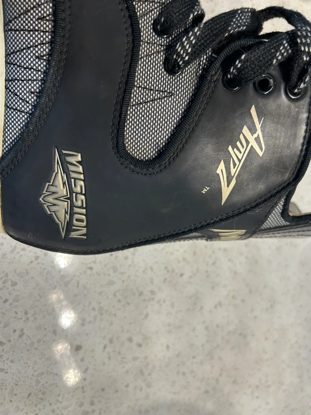 67Selling a pair of Mission Amp 4 Series ice hockey skates. They are black and in good condition. The stiffness is rated 55. Please check the photos for details!