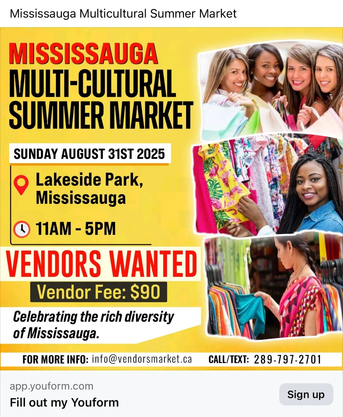 Shop my cutesy closet at the Mississauga Multicultural Summer Market! It's happening on Sunday, August 31st, 2025, from 11 AM to 5 PM at Lakeside Park in Mississauga. Find the pink sign “Chic Cycle Closet” for all cute brand new and gentle-worn items at the lowest prices. 💕💕