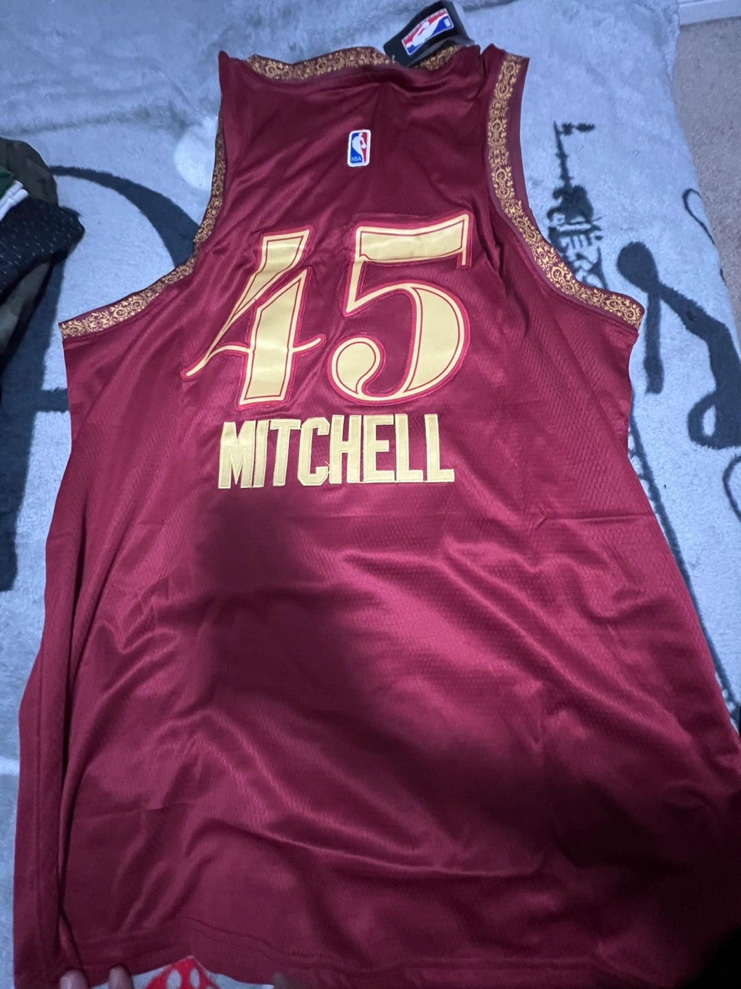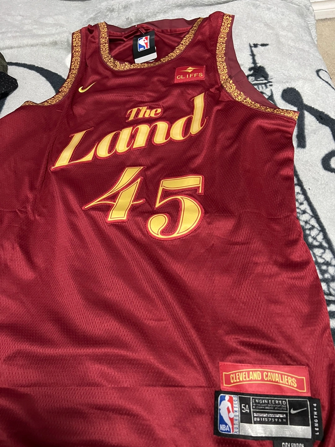 Selling a Mitchell Cleveland Cavaliers jersey in size 54. It's in great condition and ready for a new home! Features the number 45 and the 'The Land' design Brand New!