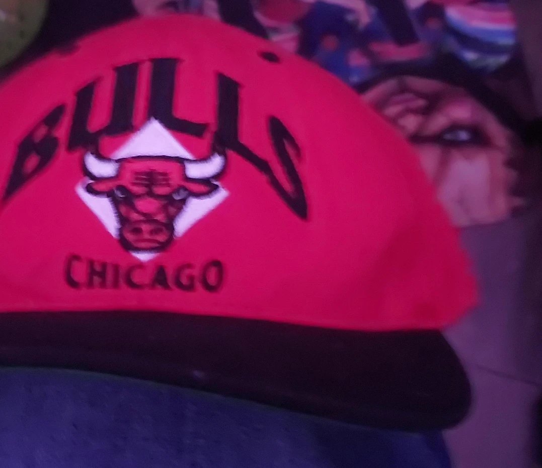 75Selling a Mitchell & Ness Chicago Bulls hat. The hat is red with a black brim and features the Bulls logo. It's in great condition!