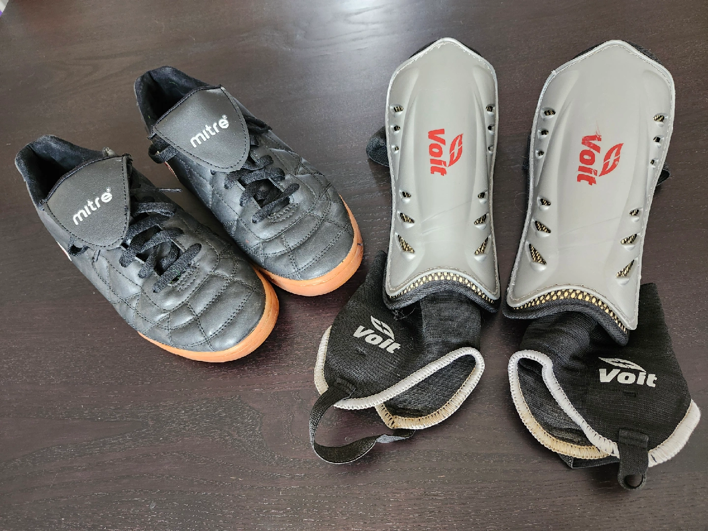 Mitre youth size 7 indoor soccer shoes, plus Volt shin & ankle guards. Pick up in Kitchener, $50