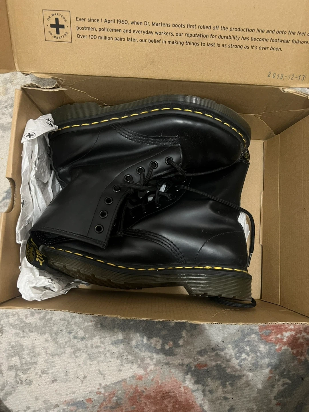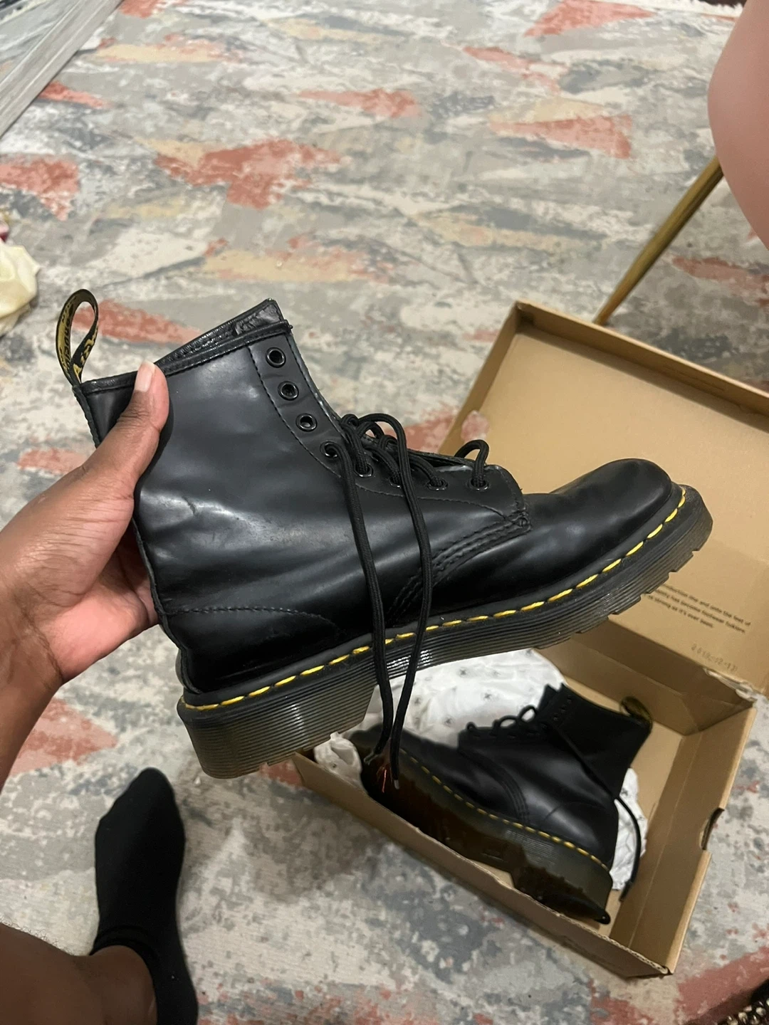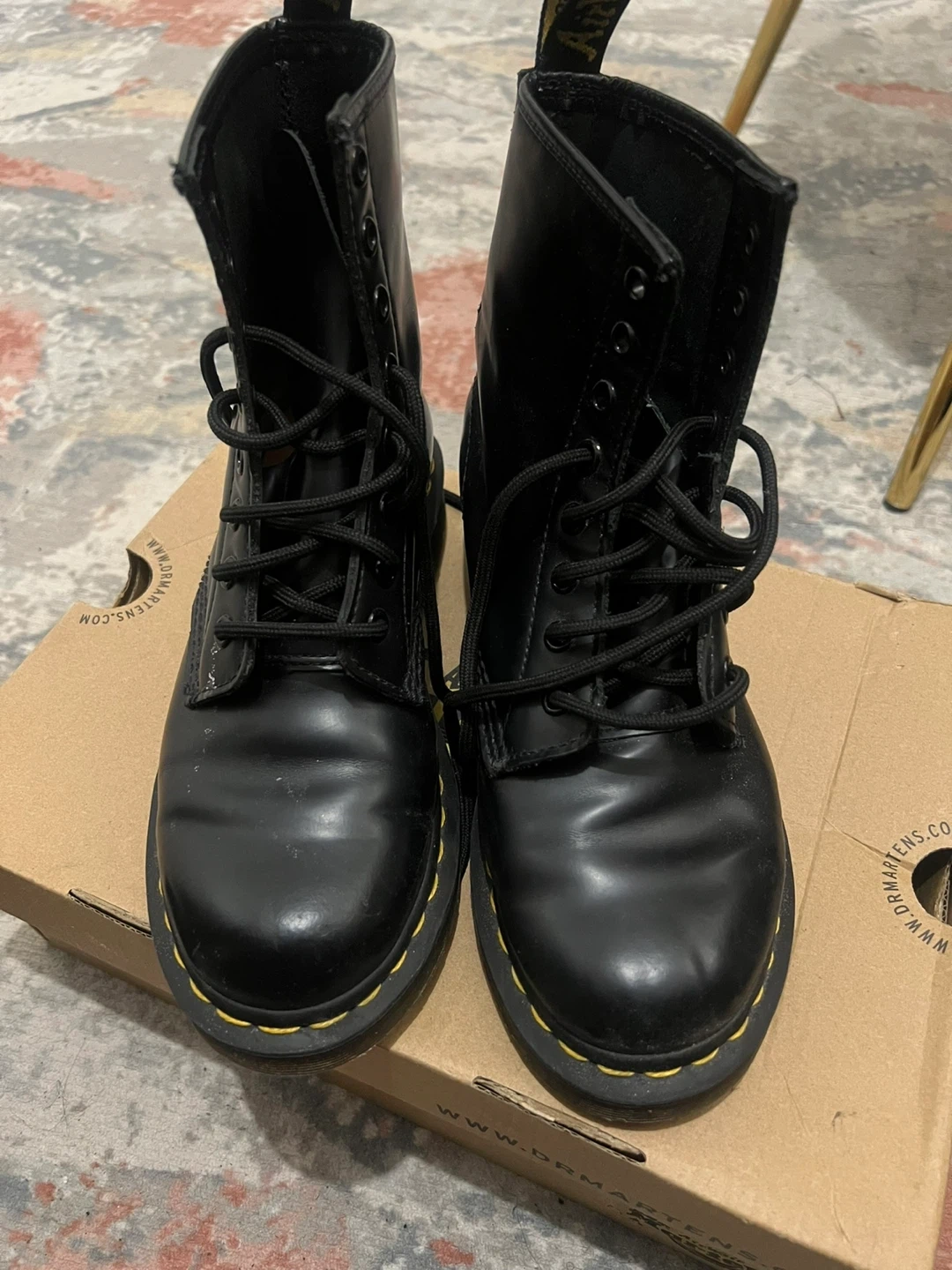 Selling a pair of Dr. Martens 1460 W boots in black. These are a women's size 6 (US). They come with the original box. Originally bought for $200