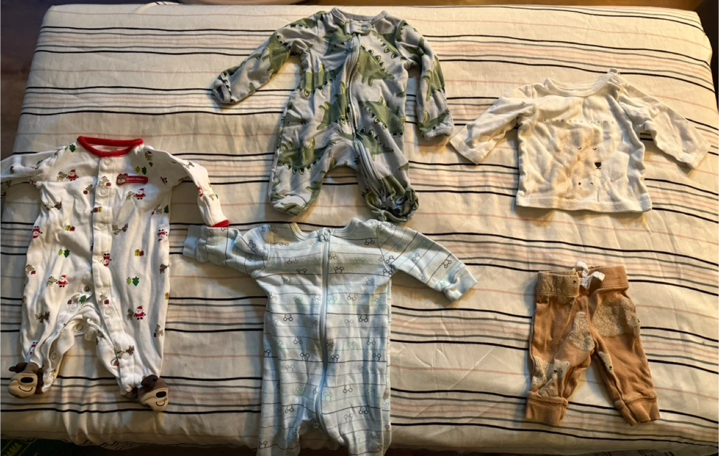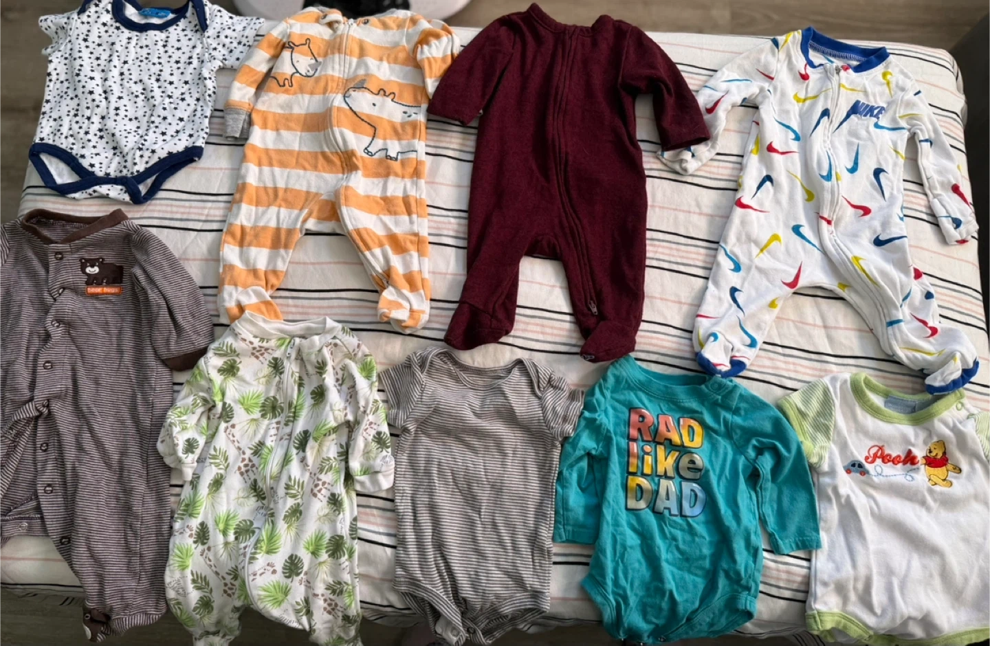 A big bundle of baby clothes, perfect for newborns to about 3 months old! There's a variety of bodysuits and sleepers from brands like Nike, Carter's, and more. All in good used condition and ready for a new little one! Selling 1$ a piece. Message if interested!