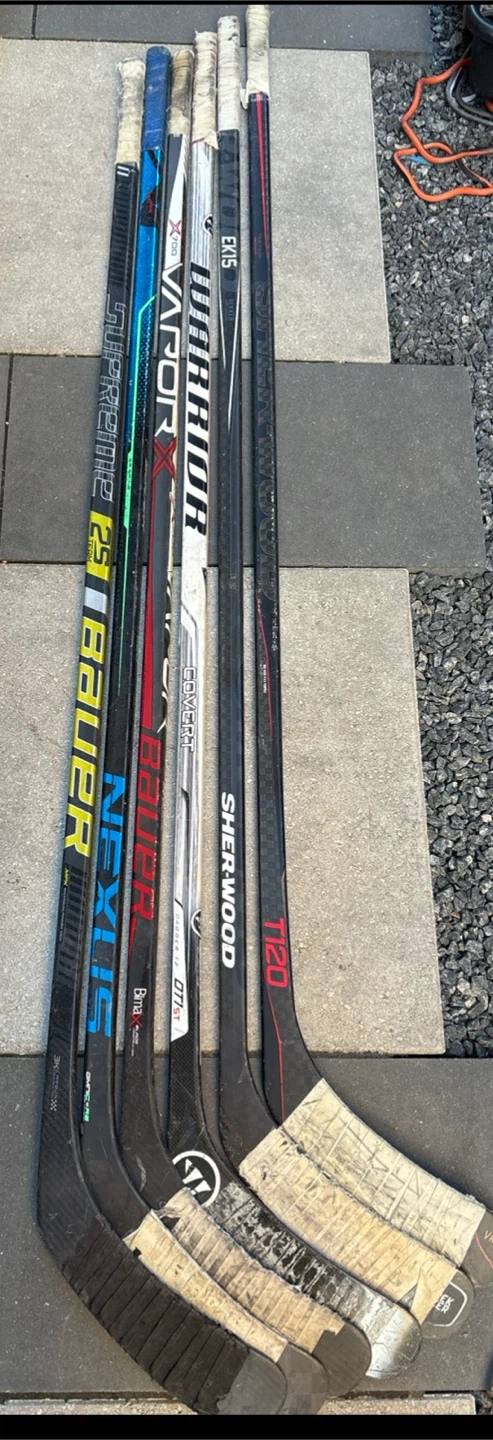 18$30 for all them Selling a collection of used hockey sticks! There's a mix of brands including Bauer, Warrior, and Sherwood. Great for practice or recreational use