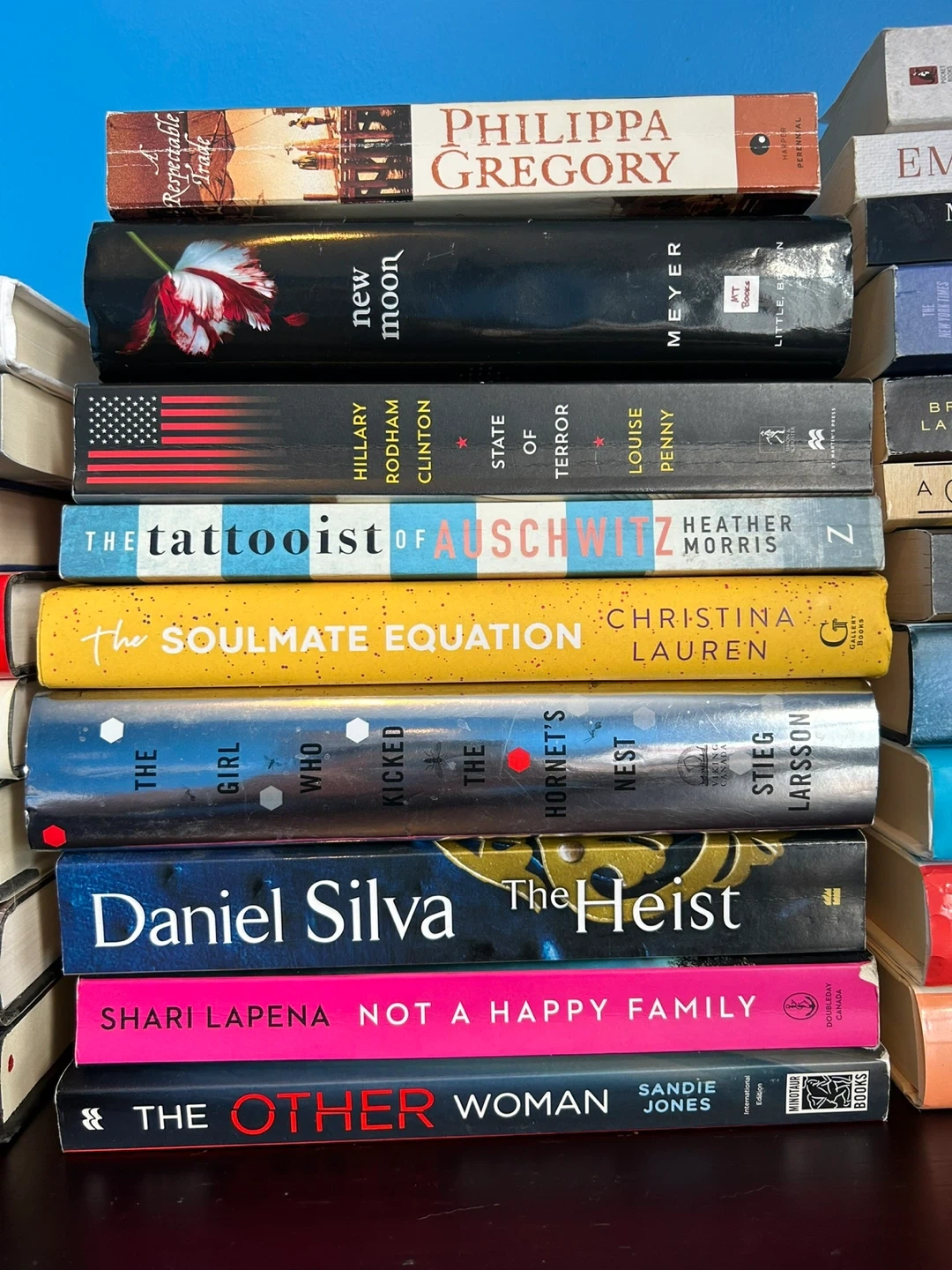 All Under $5!! Huge Collection of Popular / Bestseller Books Assortment of popular / bestseller novels. All in brand new to good condition. Great for readers or collectors. Everything from $1-5. Happy to make a deal for large orders. Titles include: - Fire Weather by John Vaillant - King of Scars by Bardugo SOLD - The Humans by Matt Haig SOLD - Lessons in Chemistry by Bonnie Garmus SOLD - Where'd You Go, Bernadette by Maria Semple SOLD - I Am Malala by Malala Yousafzai - The Martian by Andy Weir SOLD - Silent Honor by Danielle Steel - The Ghost by Danielle Steel - Lightning by Danielle Steel - The Long Road Home by Danielle Steel - The Heist by Daniel Silva SOLD - The Other Woman by Sandie Jones SOLD - Not a Happy Family by Shari Lapena SOLD - My Best Mistake by Terry O’Reilly - Looking for Jane by Heather Marshall SOLD - Lost in the Never Woods by Aiden Thomas - A Thousand Days in Venice by Marlena de Blasi - Talking to Strangers by Malcolm Gladwell - The Borrowed Life of Federick Fire by Anna Johnston SOLD - The Antique Hunter’s Guide to Murder by C.L. Miller - Mr. Mercedes by Stephen King - The Lies that Bind by Emily Giffin SOLD - The Blind Side by Michael Lewis - Three Weeks with My Brother by Nicholas Sparks and Micah Sparks - The Librarian of Burned Books by Brianna Labuskes SOLD - A Deadly Education by Naomi Novik SOLD - The Seven Husbands of Evelyn Hugo by Taylor Jenkins Reid SOLD - The One by John Marrs SOLD - The Nine Lives of Rose Napolitano by Donna Freitas - A Respectable Trade by Philippa Gregory - New Moon by Stephanie Meyer - State of Terror by Hillary Rodham Clinton and Louise Penny - The Tattooist of Auschwitz by Heather Morris - The Soulmate Equation by Christina Lauren SOLD - The Girl Who Kicked the Hornet’s Nest by Stieg Larson - Smoke and Iron by Rachel Caine SOLD - Today Tonight Tomorrow by Rachel Lynn Solomon SOLD - Here’s to Us by Becky Albertalli and Adam Silvera SOLD - What If It’s Us by Becky Albertalli and Adam Silvera SOLD Clean, smoke free home Pick up in North Ajax