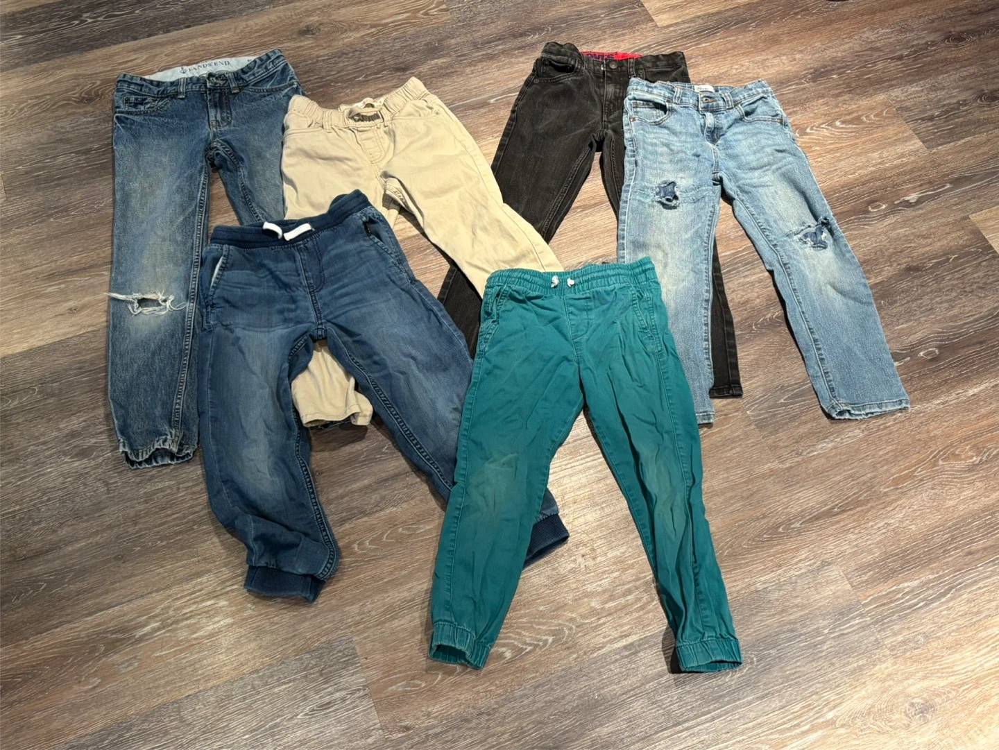 12Selling a mixed lot of kids' pants in various styles and brands! All for $30. There's a mix of denim jeans, joggers, and casual pants. Some show signs of wear, like the ripped jeans, but overall they're in good condition for everyday play. A great way to stock up on pants!