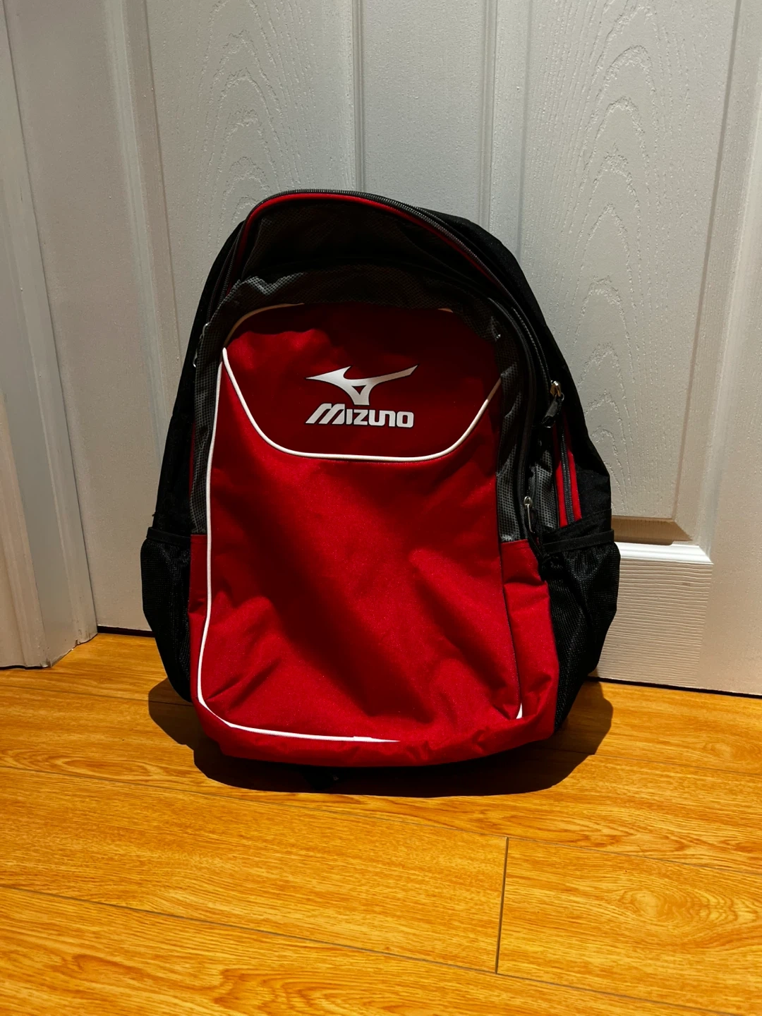 60Looking to sell a Mizuno Bolt Backpack! It's in great condition and has a sporty red and black design. Perfect for school, sports, or travel! It's lightweight and comfortable to carry around. Has a couple of compartments for easy storage