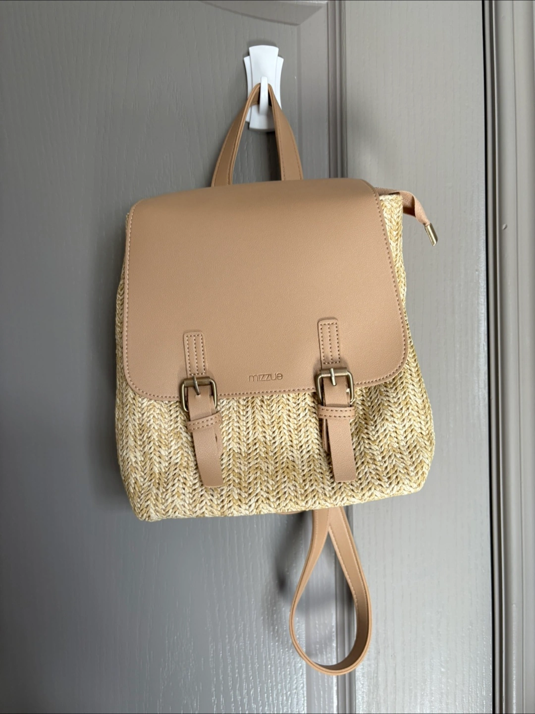 22Looking to sell this cute Mizzue woven straw backpack! It's a stylish beige colour, perfect for adding a touch of summer to any outfit. It's in great condition and ready for a new home