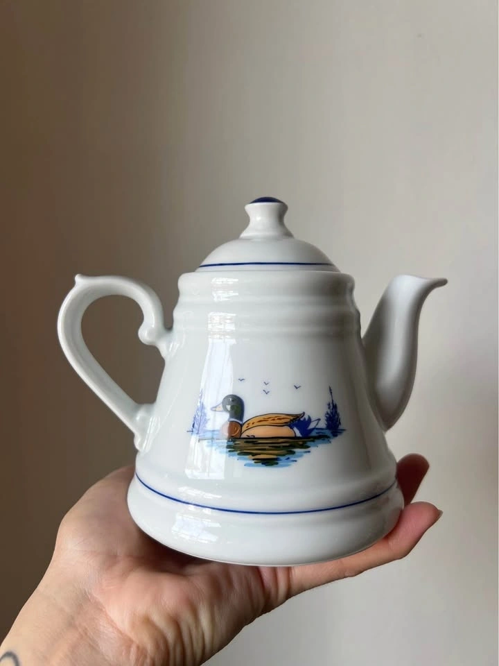 This is a small, likely single-serve teapot. It's very similar to the Kronester Bavaria "Happy Duck" set, though I don't believe it's an original. It is in mint condition. Feel free to message if you have any questions!