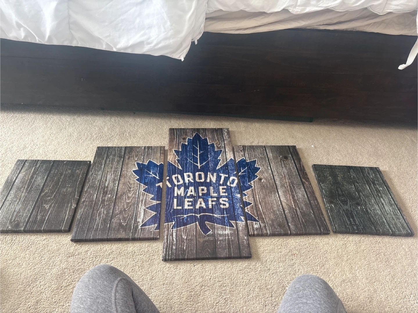 Show off your team pride with this Toronto Maple Leafs canvas wall art. It's a multi-panel design featuring the iconic blue maple leaf logo. Perfect for any hockey fan's den!