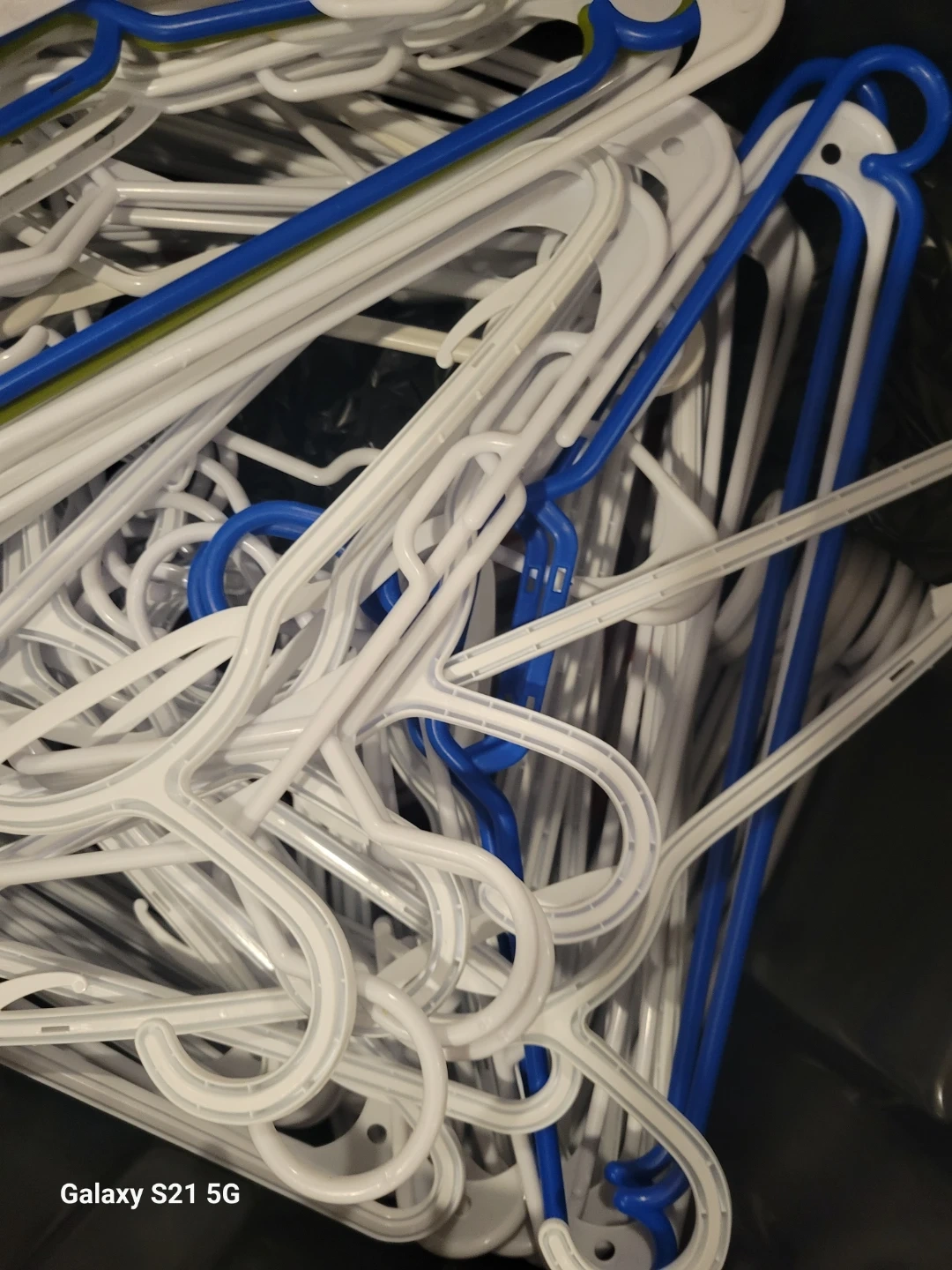 Lot of 50+ White and Blue Plastic Clothes Hangers