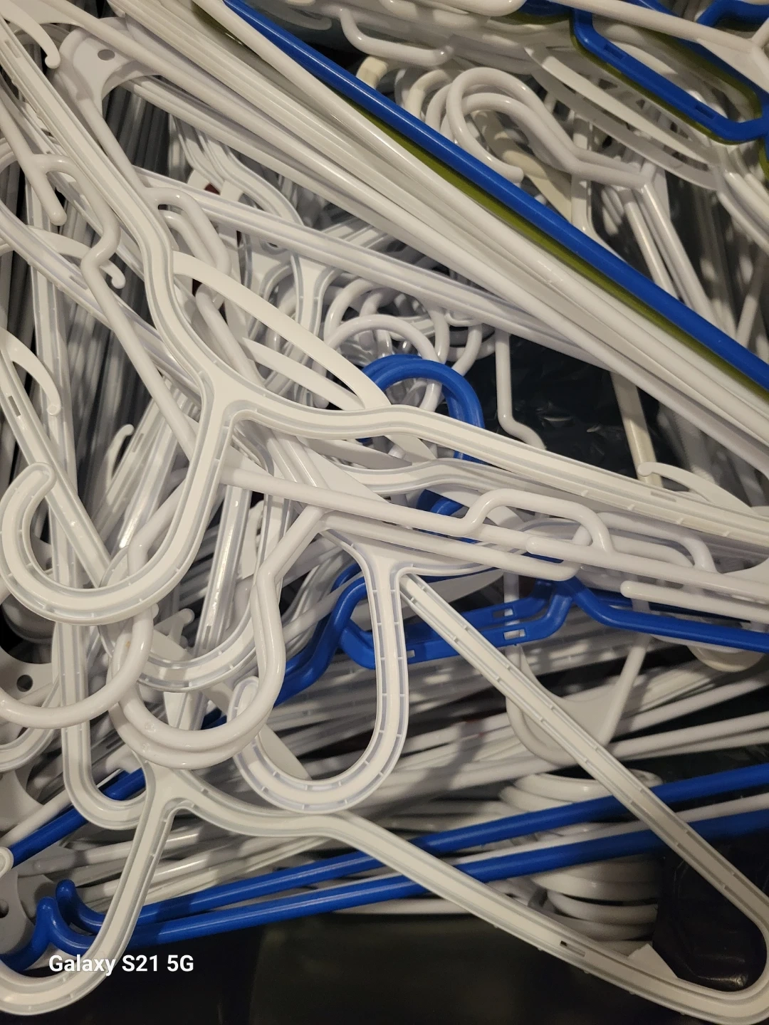 Lot of 50+ White and Blue Plastic Clothes Hangers