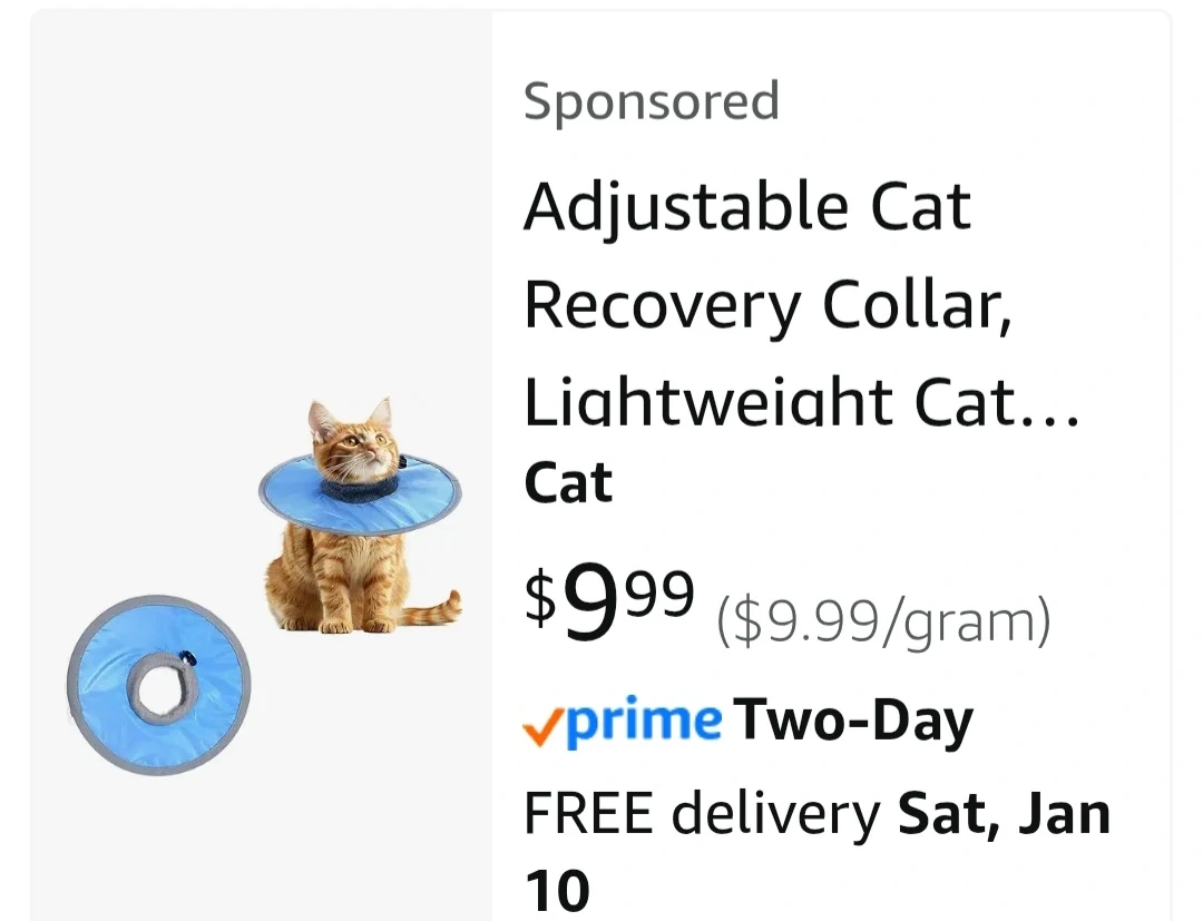 Selling a new adjustable cat recovery collar in size medium. It's lightweight and designed to be comfortable for your cat while they recover. Originally bought for $9.99 selling for $7 new didn't use pick up S E flats