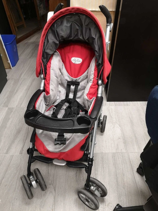 Great medium stroller, original price $400. No stain, fully functional. Lightweight: Around 13 lbs (single), making it easy to carry and transport. Compact Fold: Umbrella-style, folds with one hand, stands alone when folded, and fits easily in car trunks. Maneuverable: Features suspension, swiveling front wheels (lockable), and adjustable handles, allowing for one-handed steering. Comfort: Multi-position reclining seat and adjustable leg rest for napping, plus a large canopy with a peek-a-boo window. Safety: Equipped with a 5-point safety harness. Storage: Includes a small under-seat basket (best for small items) and often comes with a parent cup holder. Made in Italy: Known for quality and design. For Sale By: Owner