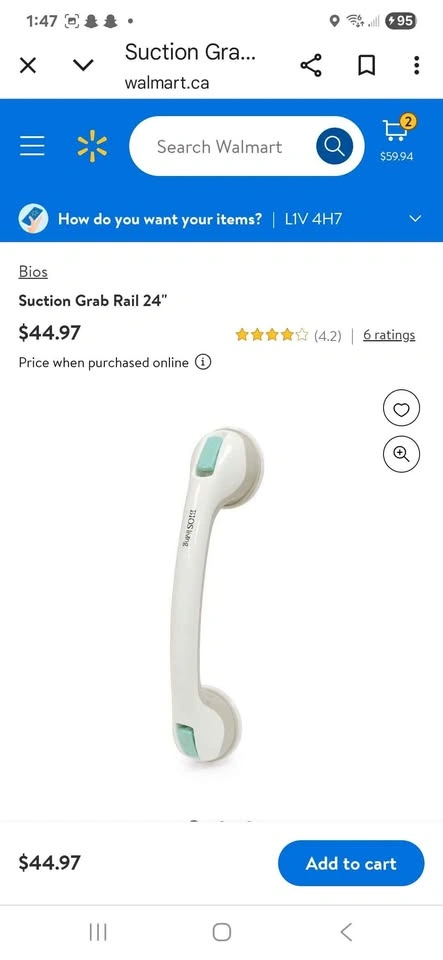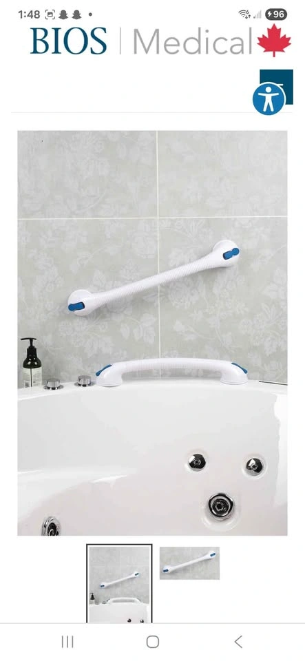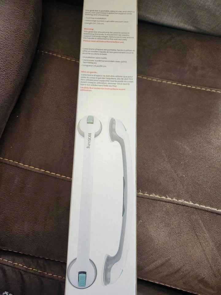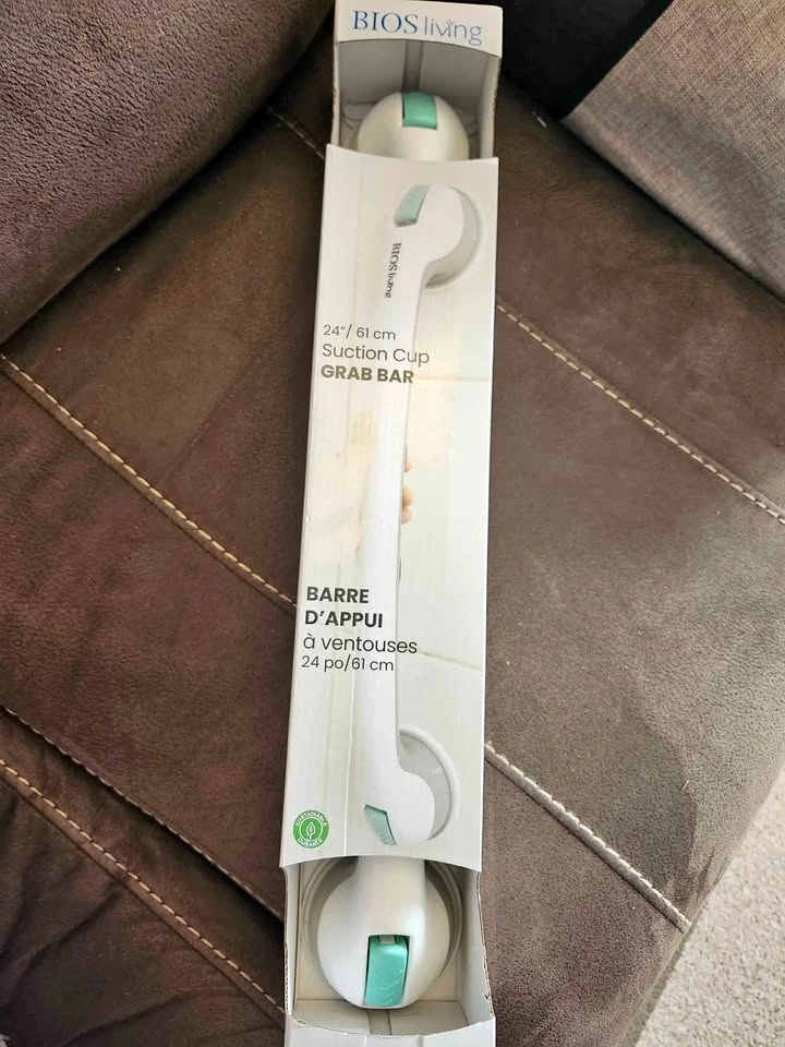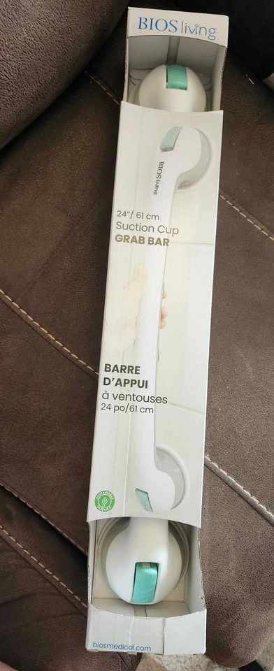 Brand new in box. Pick up is in Ajax. Cash only please. If AD is up the product is still available. Bios Medical 24" Suction Cup Grab Bar. This grab bar is portable, easy to use and offers a quick and easy, non-permanent option for more support while bathing and showering. The suction grab bar has a flip-up release for easy installation and removal. Features: Attaches easily without drilling, Ribbed slip-proof grip, 1 year warranty. Specifications: Dimensions: 24” / 61 cm.