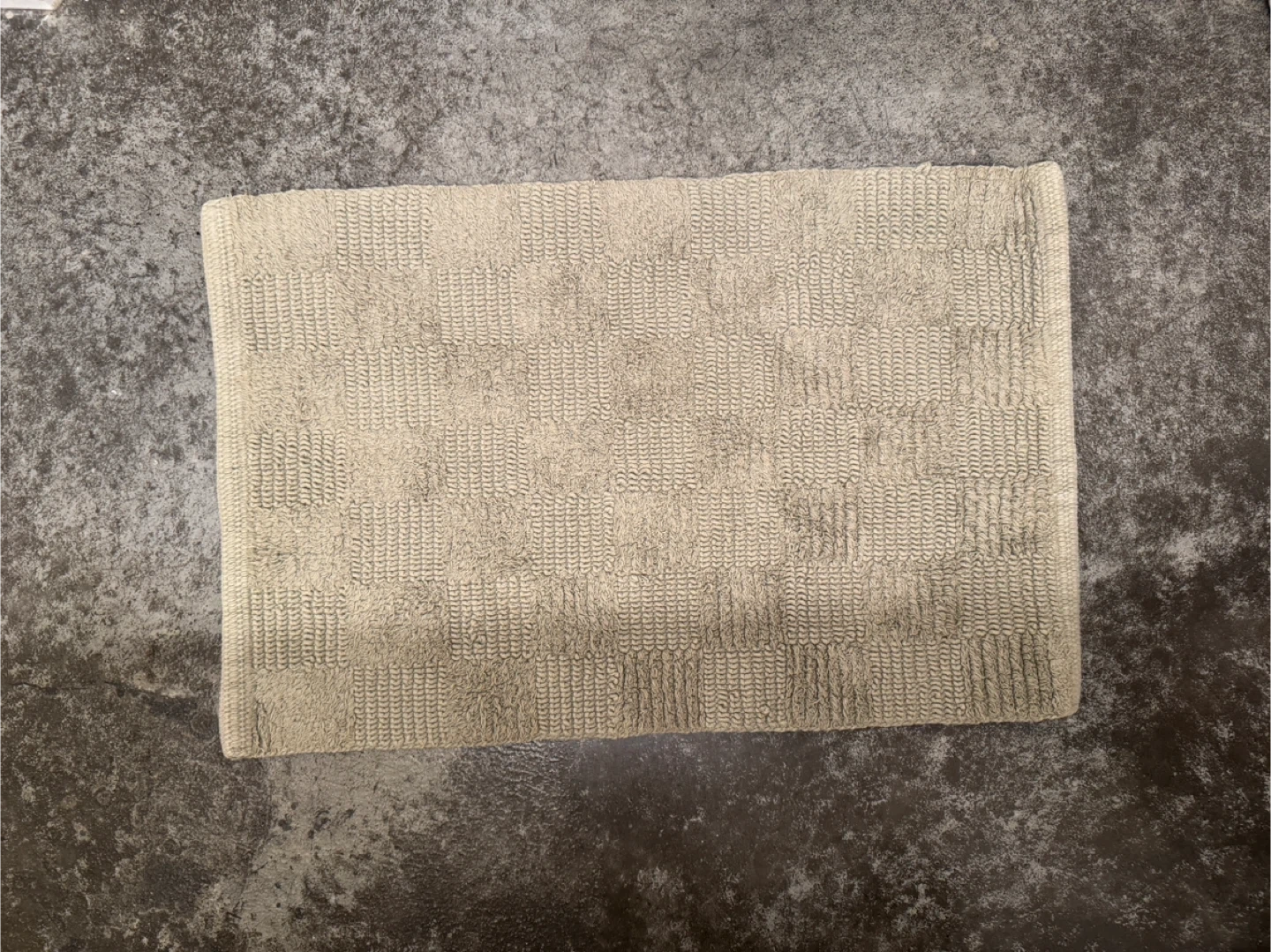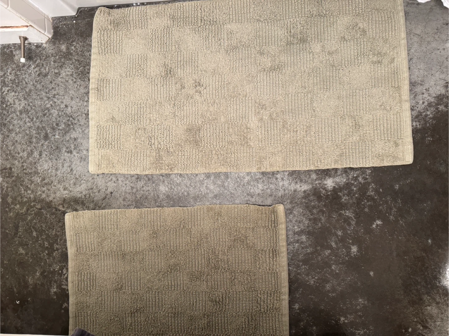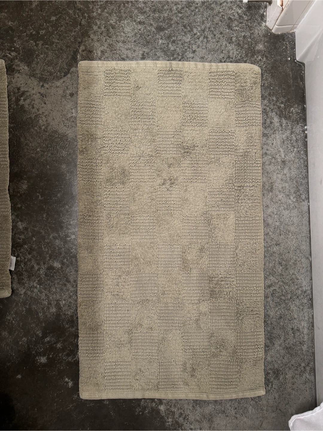 Selling a set of sage green bath mats with checkered design. They show some signs of use, as you can see in the pictures. Perfect for adding a cozy touch to your bathroom!