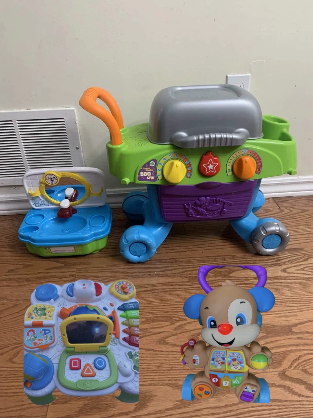 A BBQ Grill, comes with food toys you can put on the grill and buttons and knobs to turn up and down
