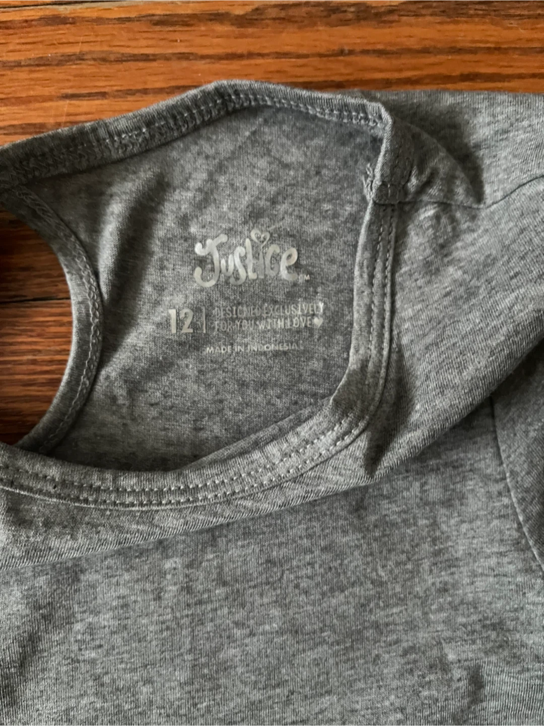 This is a girls' size 12 t-shirt and pants set from Justice. The grey t-shirt features avocado graphics with "Hola!" and "Yo! Great Day!" speech bubbles. The grey leggings have "LOVE JUSTICE" printed down the leg. Both pieces are made of soft, stretchy material for comfort.