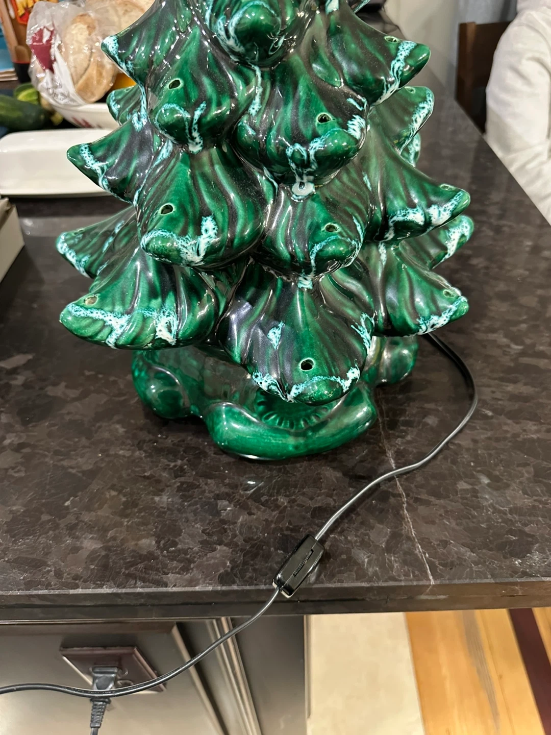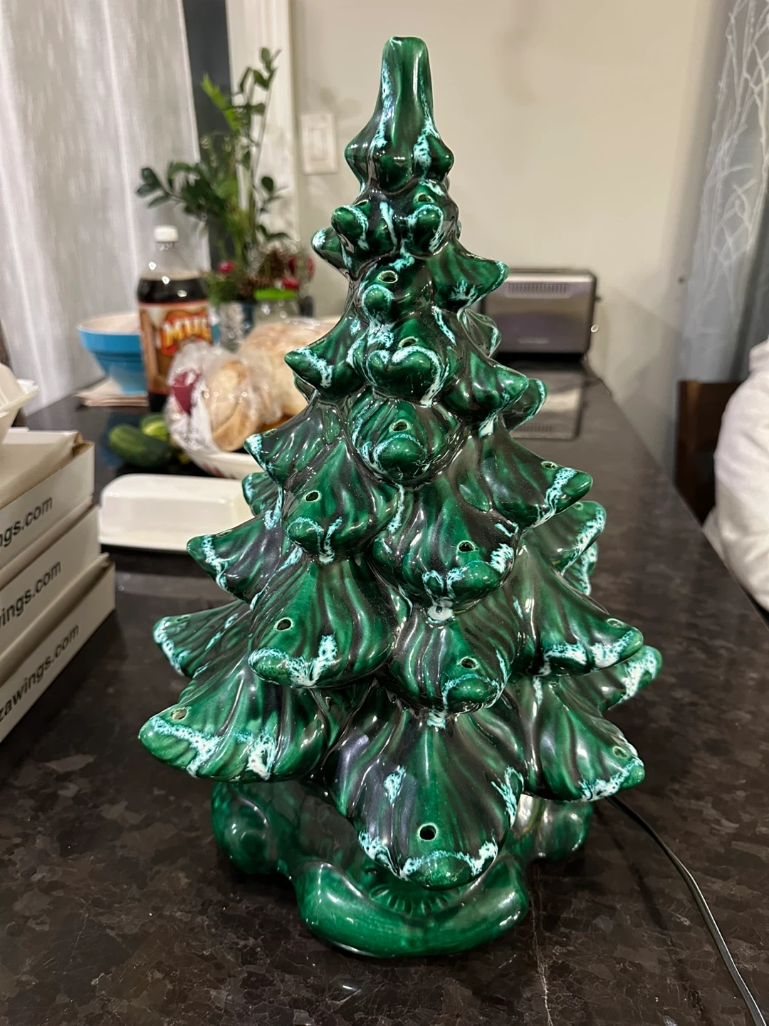 ceramic light-up Christmas tree, approximately 17 inches tall.