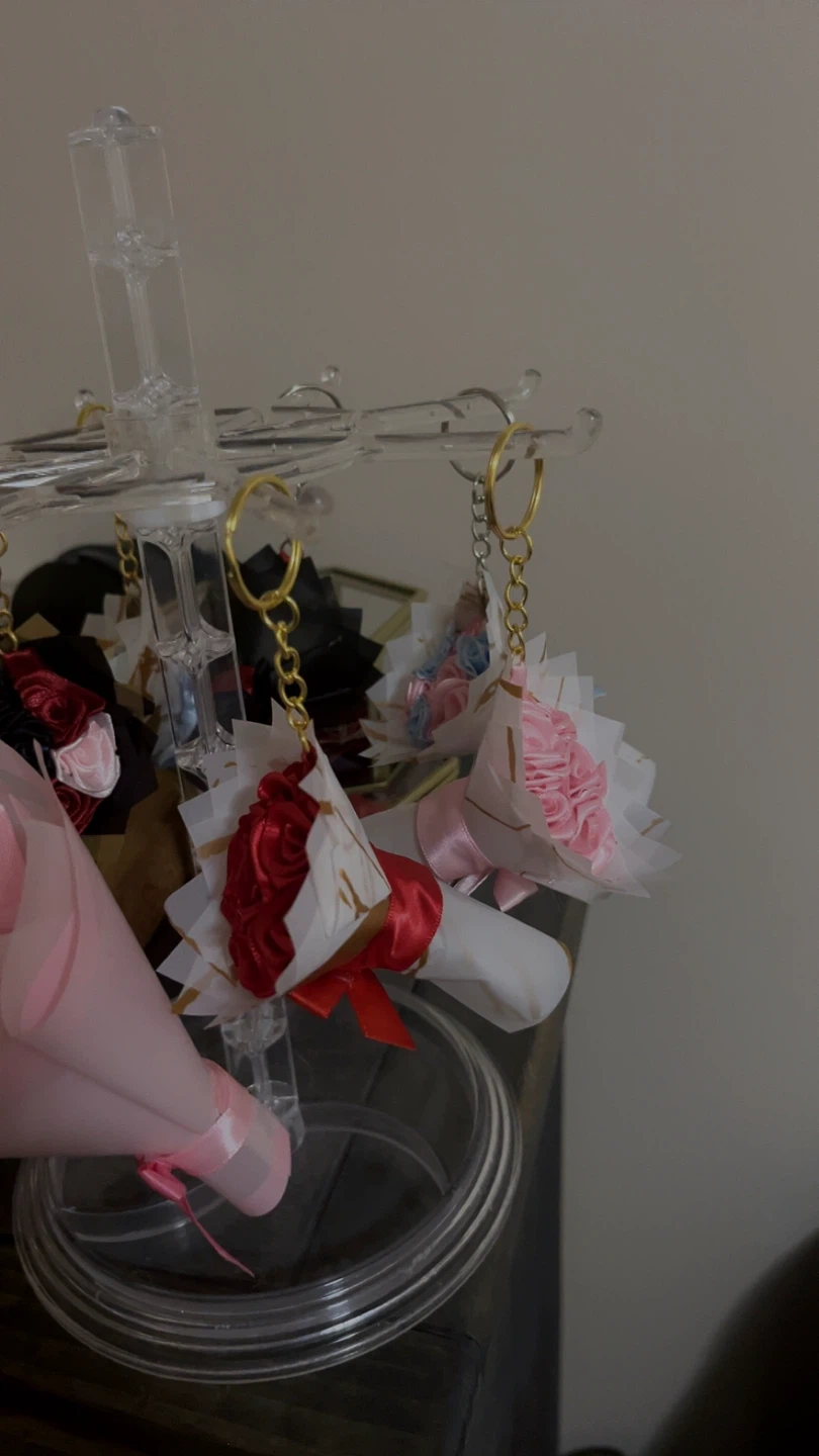 Charming Paris bouquet keychains featuring artificial roses. Available in various colours and designs. These make a lovely small gift or accessory! I do custom orders follow me on insta or tiktok forever.floréa