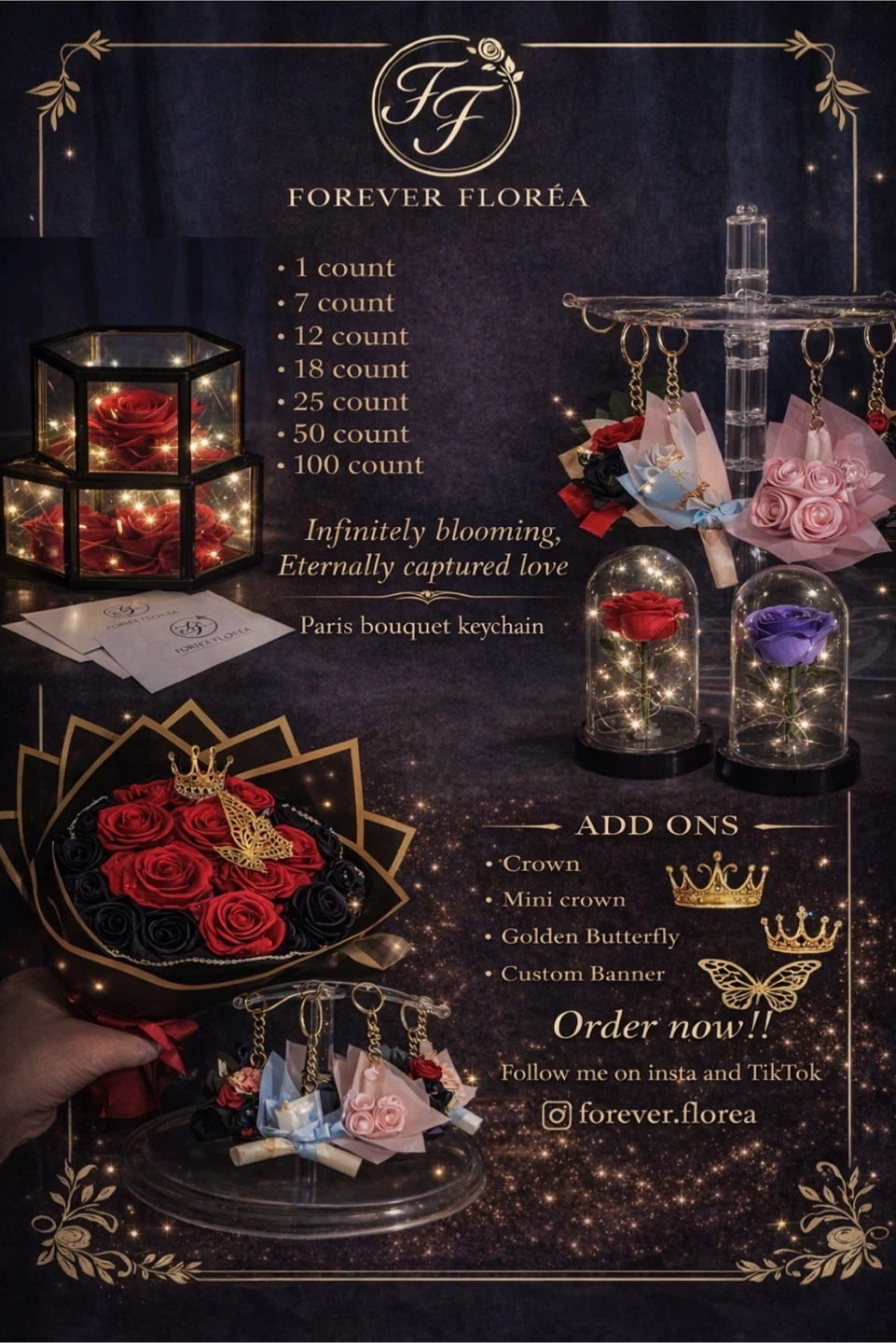 Charming Paris bouquet keychains featuring artificial roses. Available in various colours and designs. These make a lovely small gift or accessory! I do custom orders follow me on insta or tiktok forever.floréa