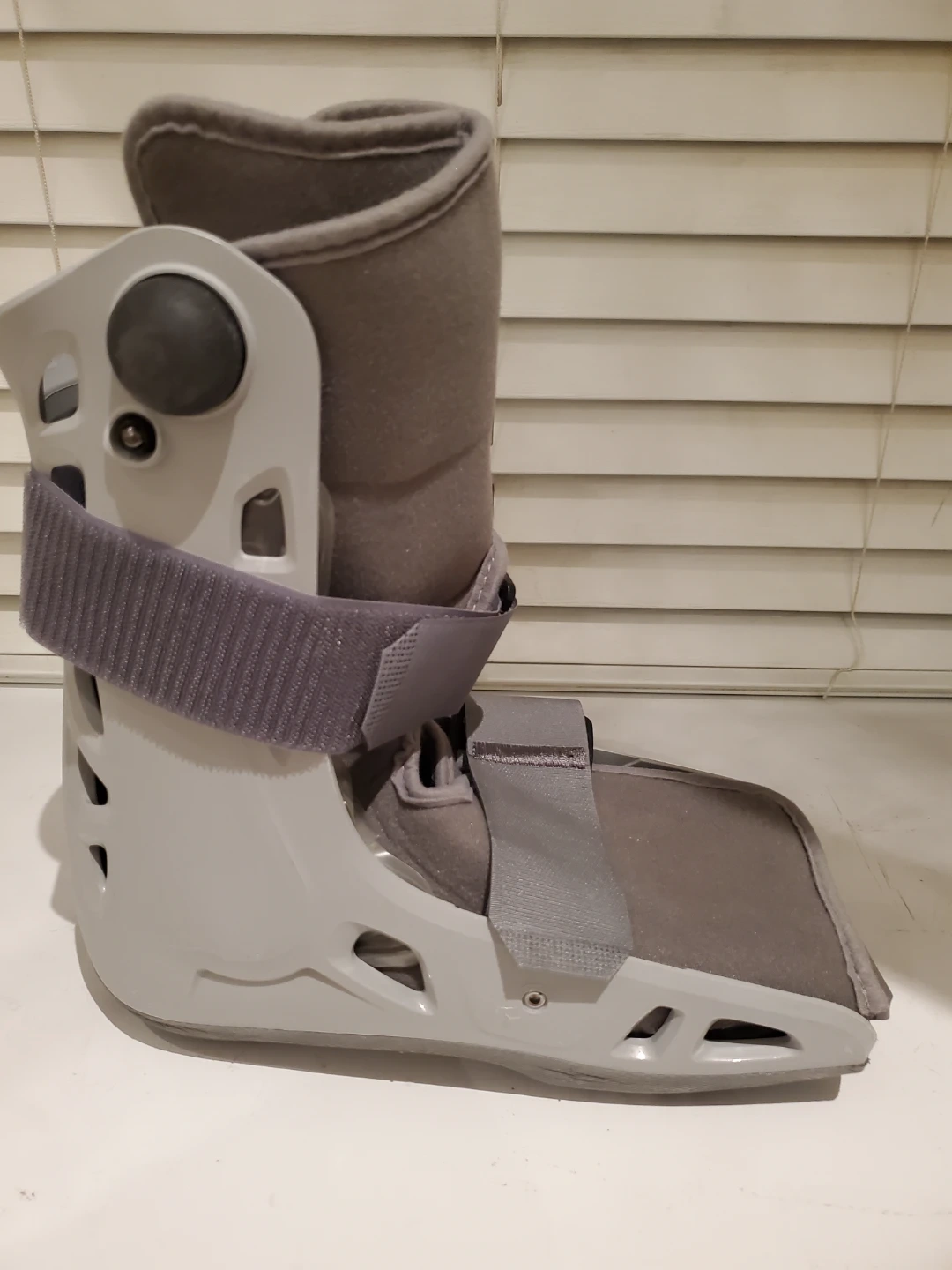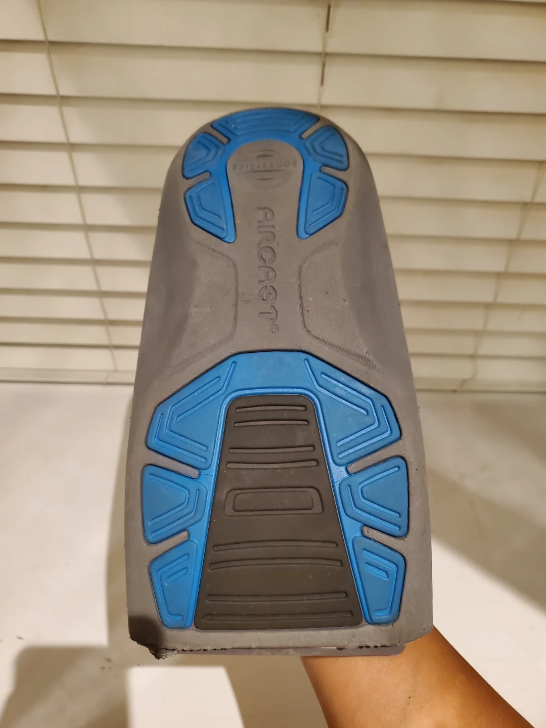 This Aircast walking boot is designed for support and immobilization. It features adjustable straps for a secure fit. The bottom has a durable, non-slip sole. This boot is sized Large.