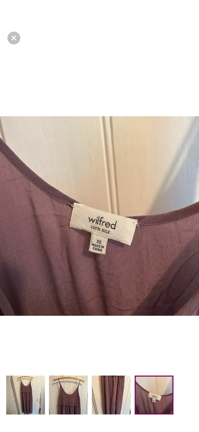 Wilfred brand for Aritzia. Spaghetti strap vneck midi dress. Purple in colour. 100% silk. Brand new condition