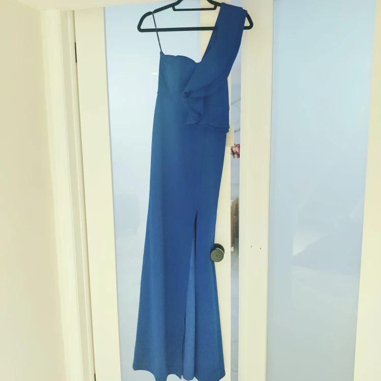Selling a beautiful Lulus 'Kiss Me Again' one-shoulder ruffle gown in royal blue! It's never been used, tags still on. Originally bought for $70.80 + HST from Nordstrom.