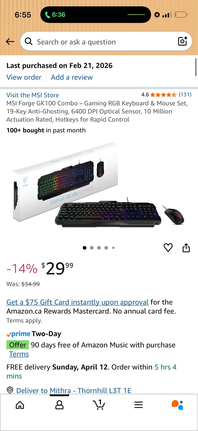 Selling my MSI Forge GK100 gaming keyboard and mouse combo — bought brand new on February 21, 2026 for $34 + tax. Used for less than 2 months, in excellent condition. Selling because I’m moving out.