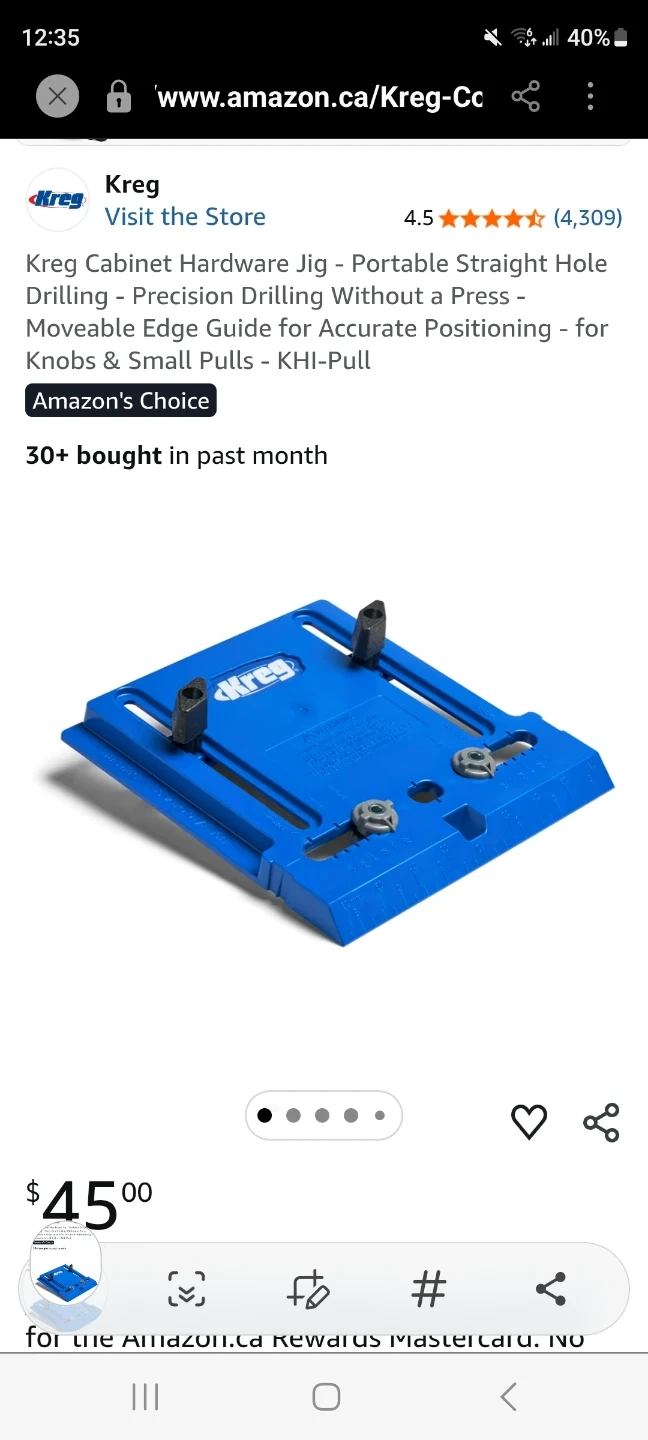 KREG CABINET HARDWARE JIG: Portable Guided Drilling: The Kreg Cabinet Hardware Jig creates clean, accurate holes when a drill press isn’t available—giving you repeatable results with ease