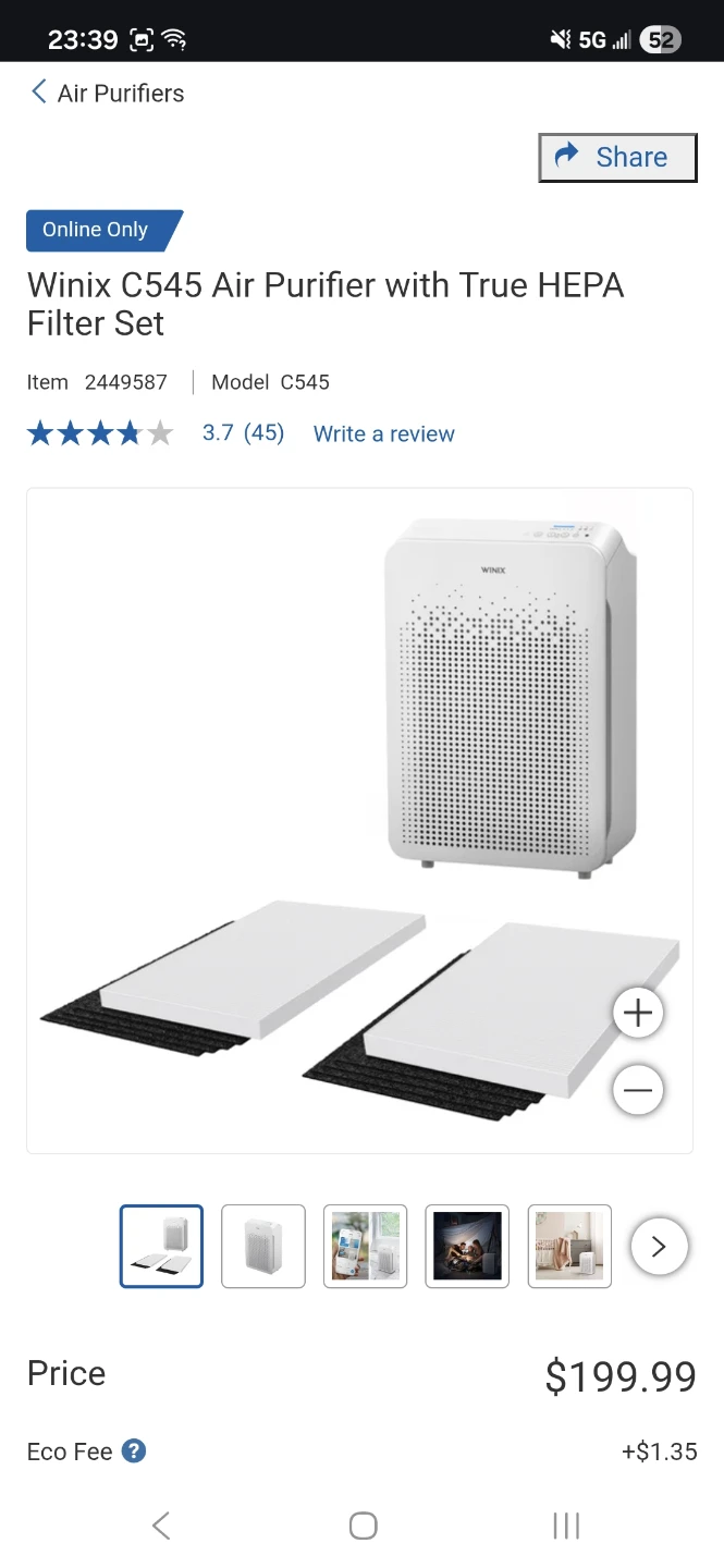 Winix C545 Air Purifier with a True HEPA filter set. Includes the air purifier and replacement filters. Keeps your air clean and fresh!