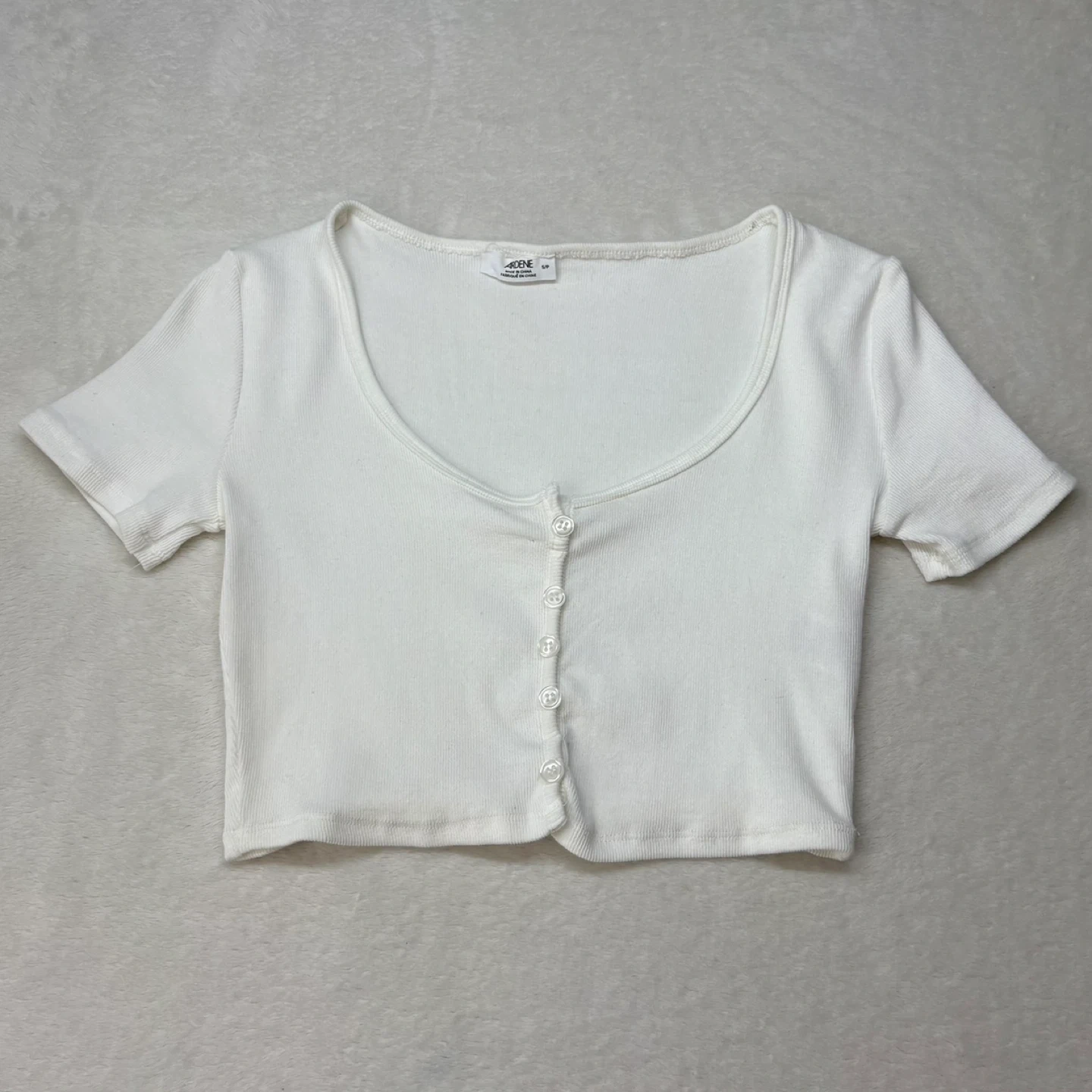 Ardene White Ribbed Scoopneck Button Front Crop Top Size Small