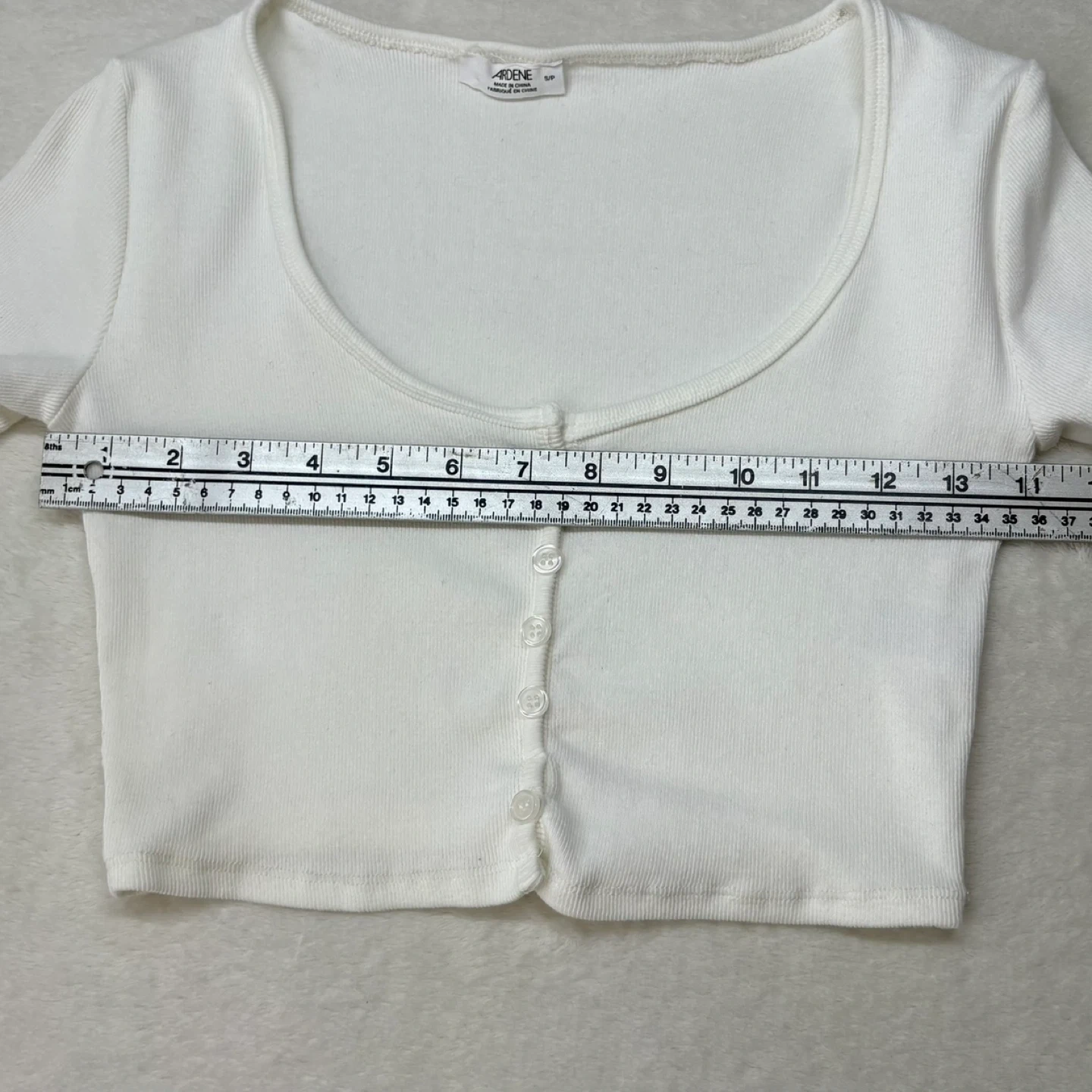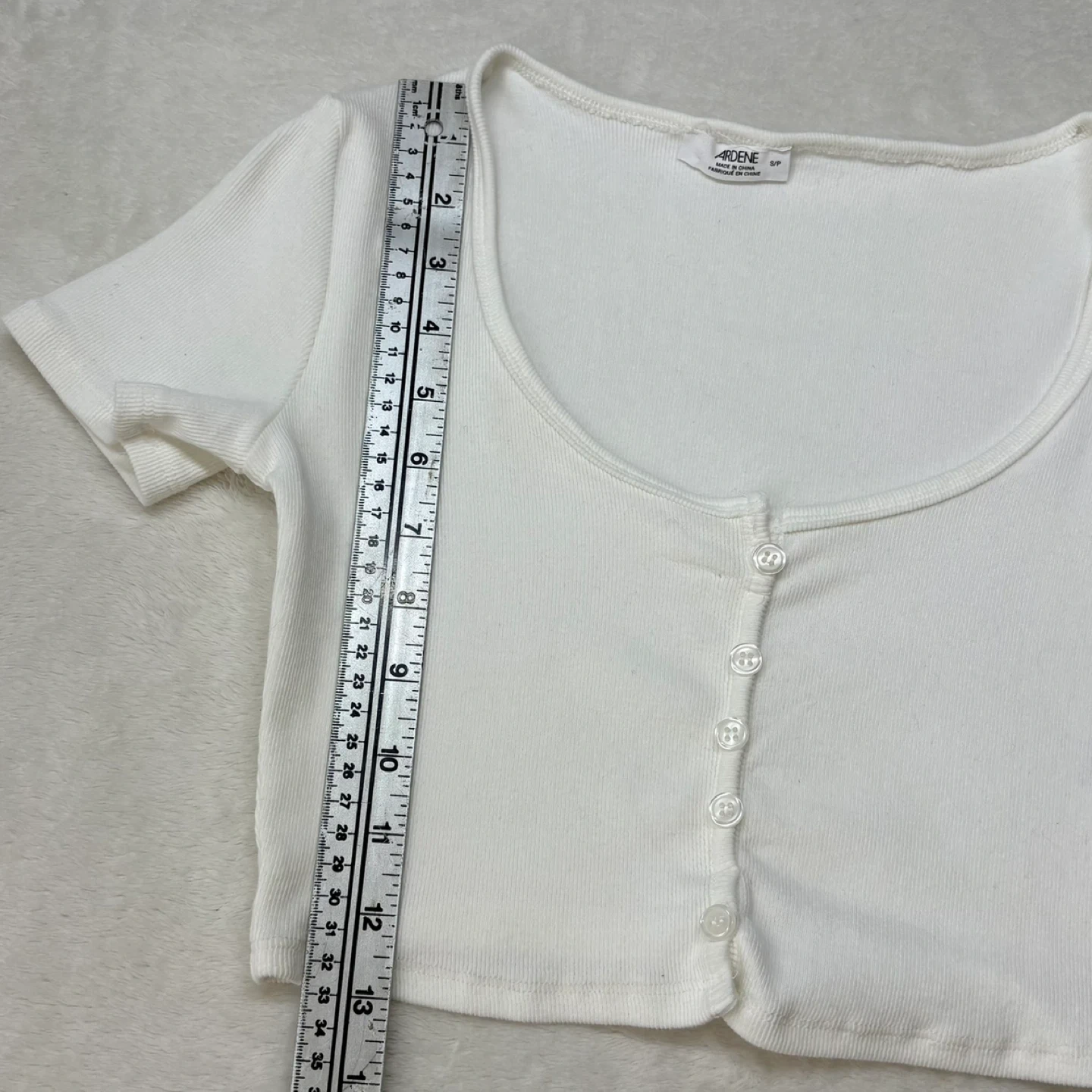 Ardene White Ribbed Scoopneck Button Front Crop Top Size Small