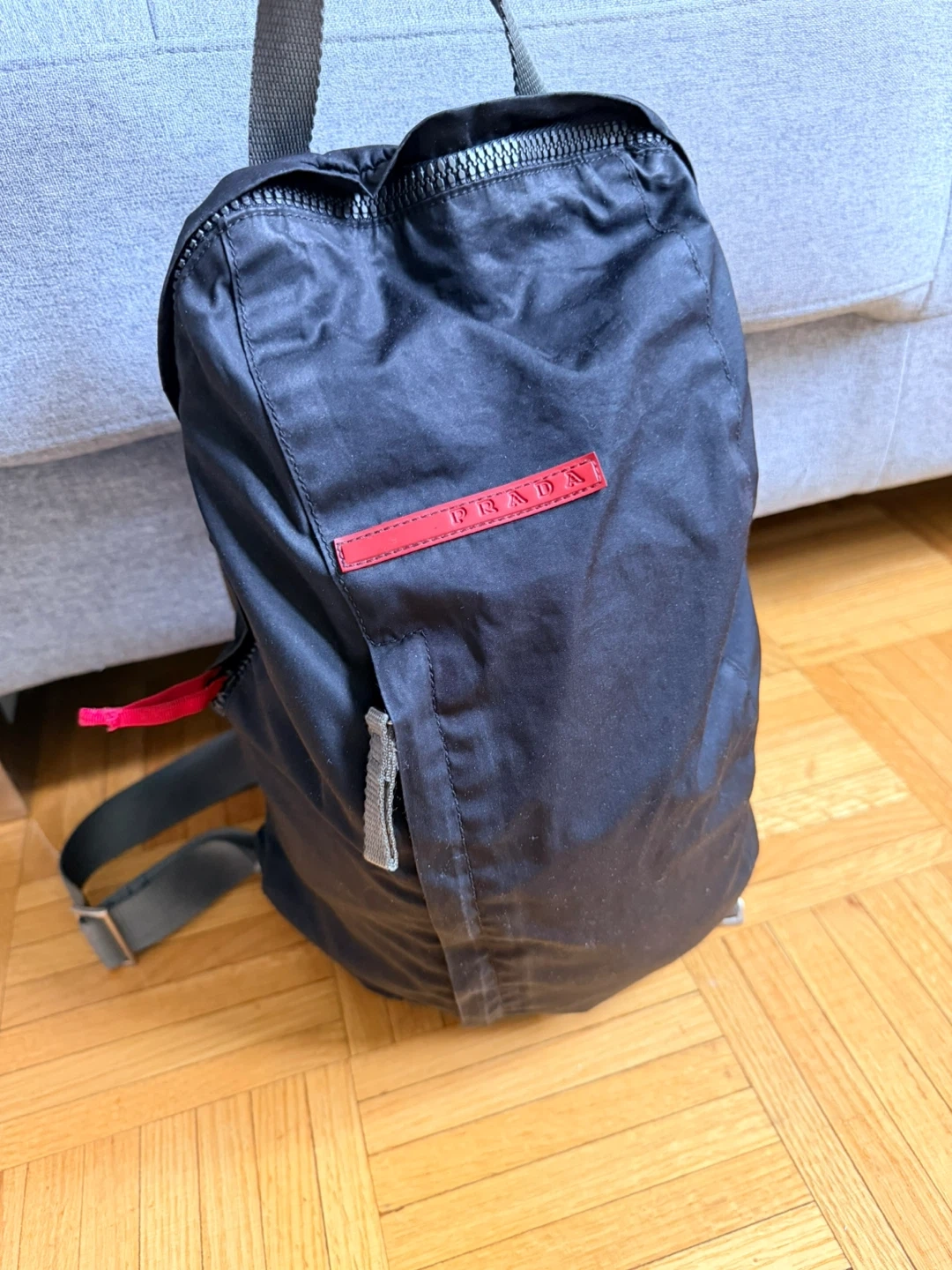Buy & SellPrada BackpackPrada Backpack$90This is a Prada backpack. It's made of 63% polyester and 37% polyurethane with a 100% polyamide lining,it is unisexConditionGoodSizeSmallBrandPradaWHERE TO MEETCheck LocationView MapSELLERverifiedZaraDixie924 reviews0 chats·2 favorites·25 viewsSEND CHAT TO SELLERHi Zara! I’m interested in your listing.Hi Zara! I’m interested in your listing.Get the Karrot app to chatSign In to chat