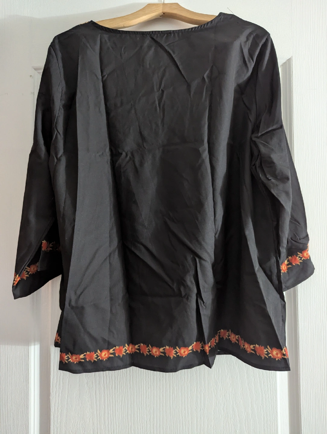 Selling a beautiful black tunic top from Sweet Romeo. It features stunning red and gold embroidery around the neckline and hem. It's brand new.