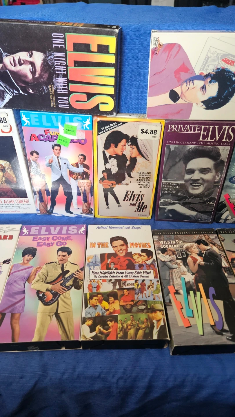 This is a collection of various Elvis Presley VHS tapes. 19 items total.