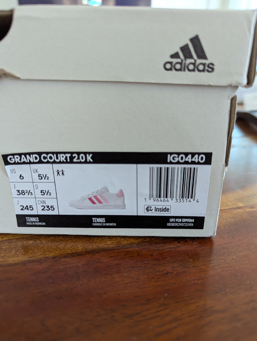 These are brand new Adidas Grand Court 2.0 K sneakers in white with pink stripes! They are a US Big Kids size 6 and come with the original box. They fit me and I wear Women's size 7 in Adidas shoes and I'm 7.5 in other brands.