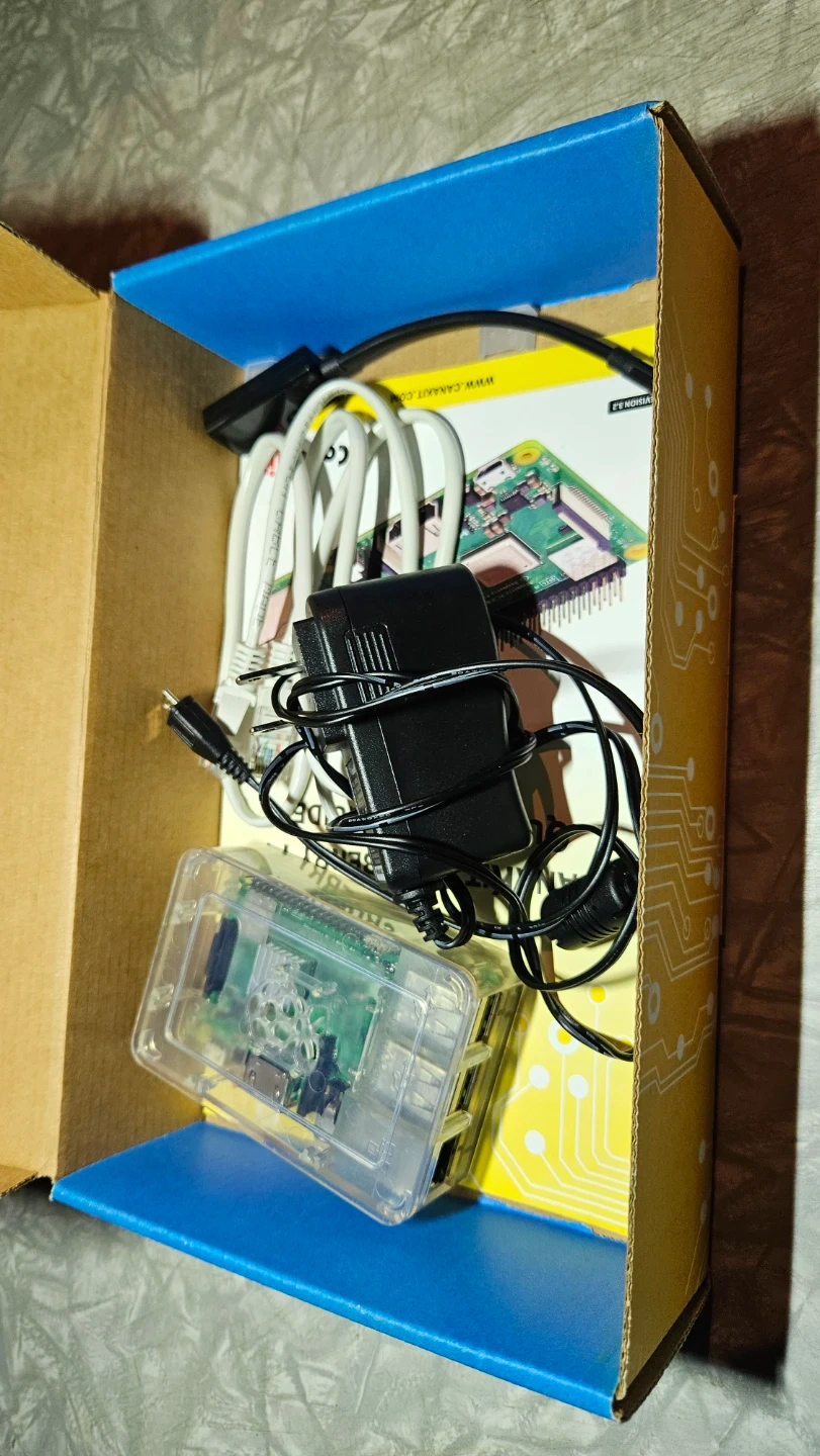 This is a CanaKit Raspberry Pi 3 Model B+ Complete Starter Kit. It includes the Raspberry Pi board, a power supply, and a clear case. This kit is ideal for hobbyists and makers looking to build projects.
