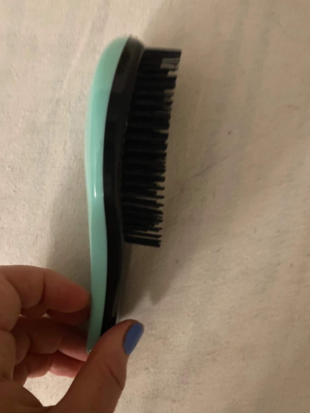 Detangling hair brush in a mint green colour. Designed for easy detangling of wet or dry hair. Its unique bristles help to minimize breakage and leave hair smooth.