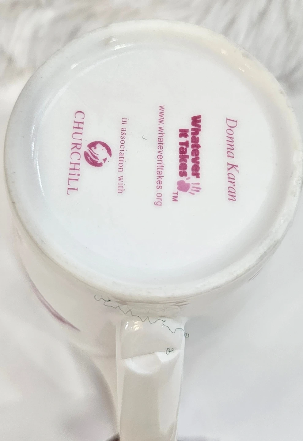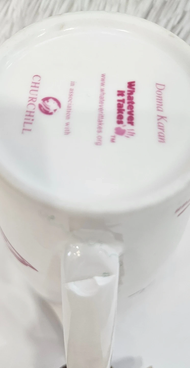 This is a Donna Karan "Whatever It Takes" mug produced by Churchill China. SOLD AS IS.