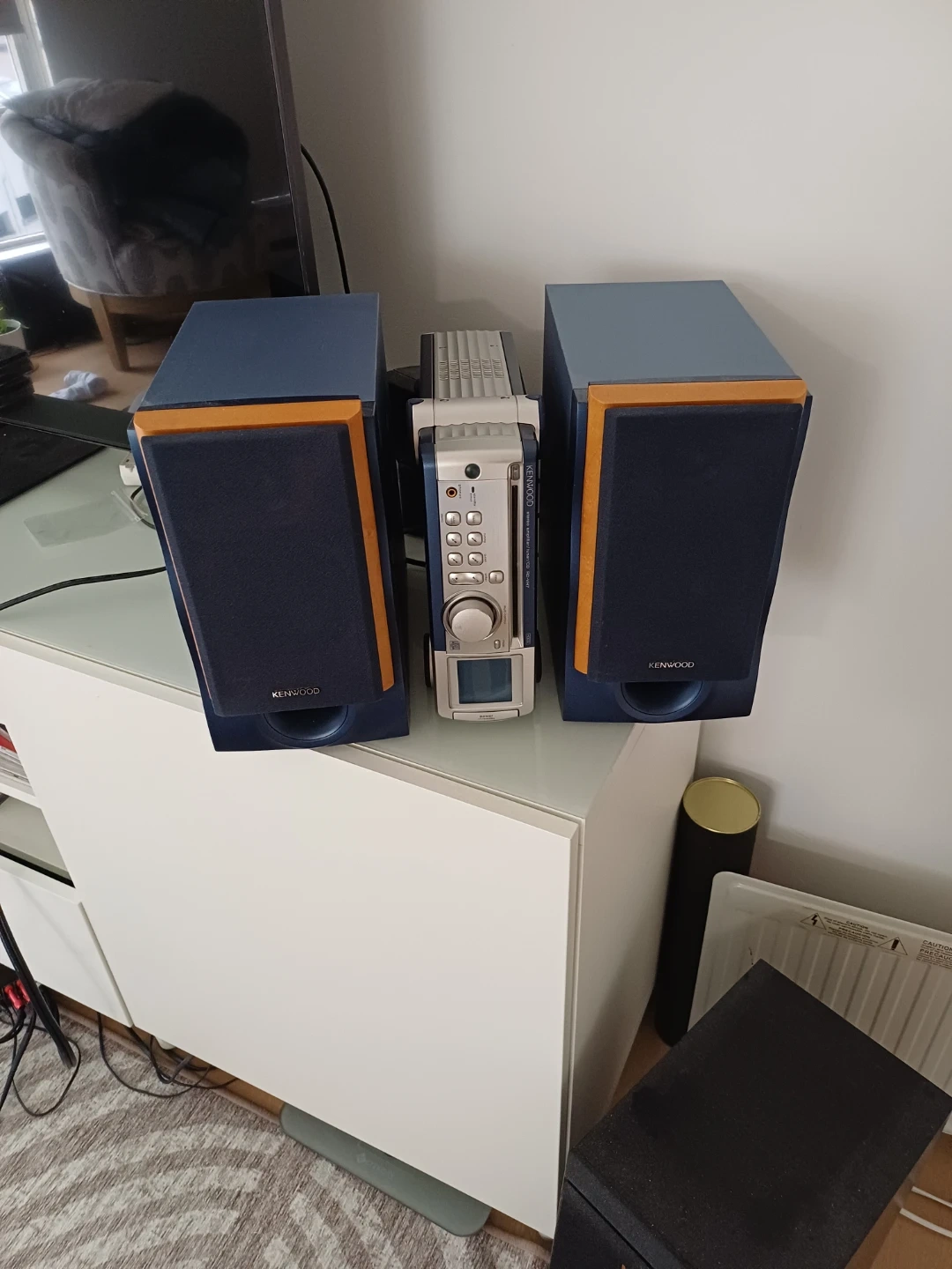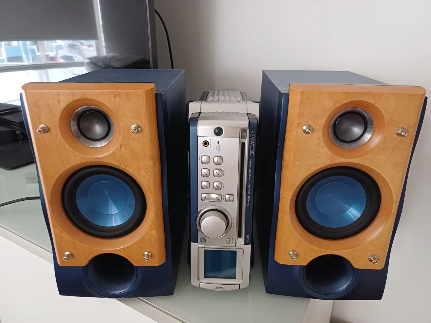 Kenwood Mini stereo with CD player and tuner. This system is a Class A/AB amplifier which typically has a warmer sound than class D amps such as there Denon or Onkyo of comparable price.
