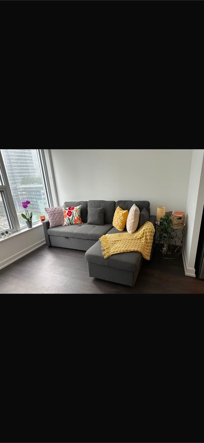 Selling a comfy grey sofa bed, perfect for guests or small spaces! It easily converts into a bed and has convenient storage underneath for blankets or pillows
