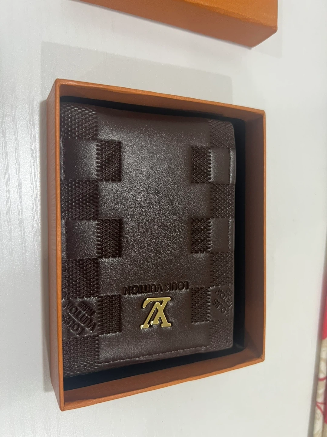 Selling a stylish Louis Vuitton wallet! It's a lovely brown leather with the classic LV design. Comes with the original box, perfect for gifting or keeping it safe. It has slots for cards and a compartment for bills. Great condition and ready for a new owner