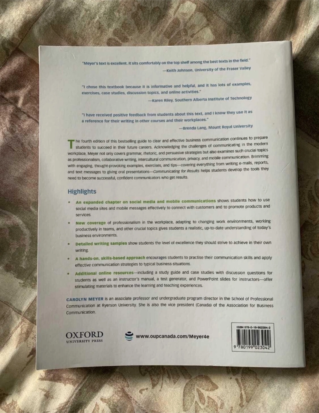 Used textbook. Fourth edition. Covers professional communication. Includes chapters on social media and mobile communications. Good for students.