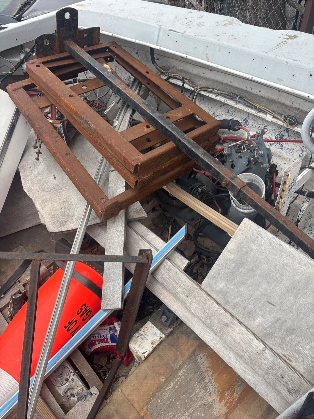 Purchased as a project but we never got around to it. Seats have been plastic-wrapped and stored indoors. No motor and likely no title.