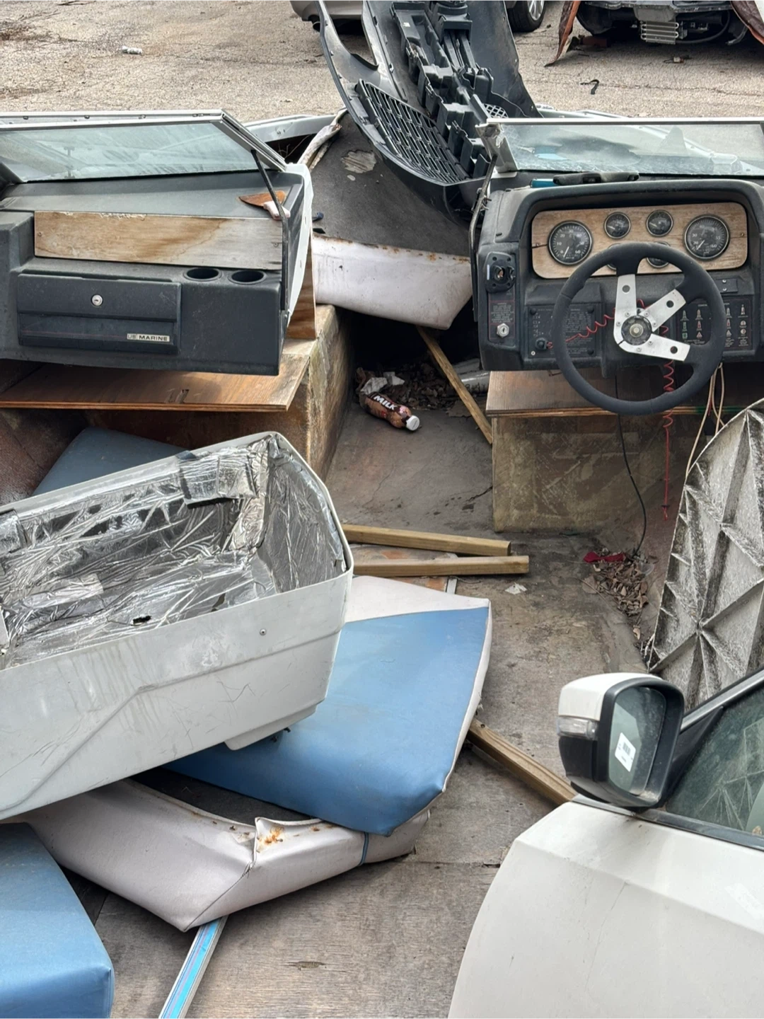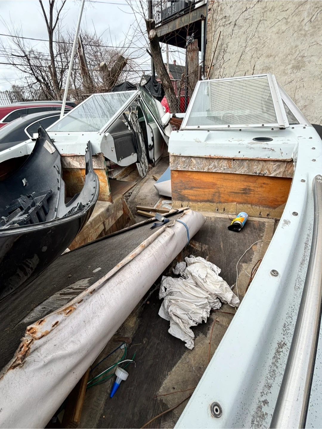 Purchased as a project but we never got around to it. Seats have been plastic-wrapped and stored indoors. No motor and likely no title.