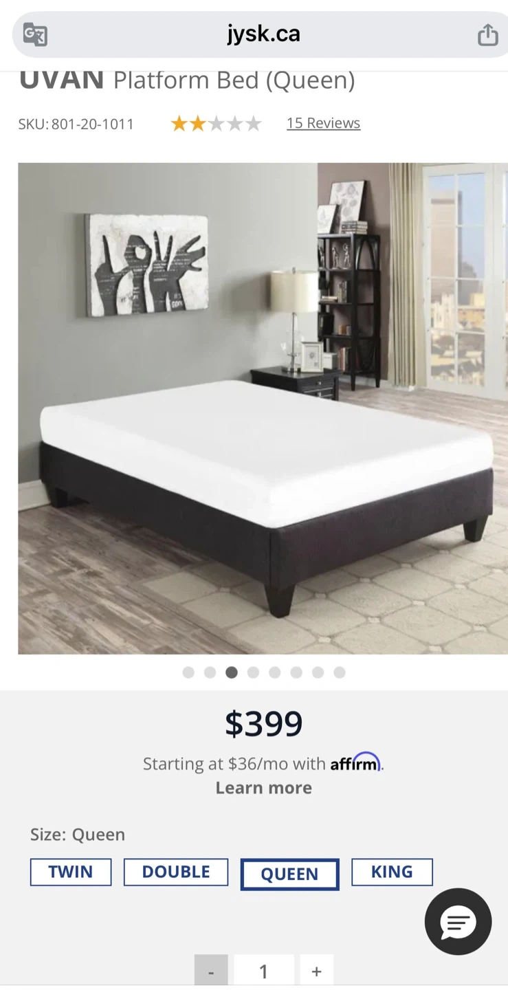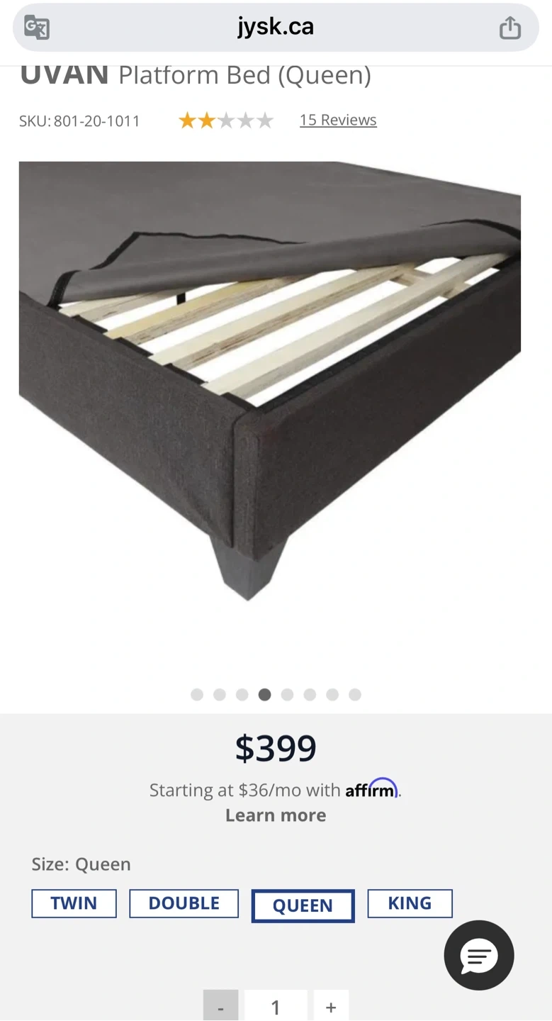 This UVAN platform bed frame is a queen size, offering a sturdy foundation for your mattress. It's upholstered in a dark grey fabric. The frame's dimensions are 203 cm long, 153 cm wide, and 37.5 cm high. This bed frame is perfect for creating a minimalist bedroom setup. Almost new.