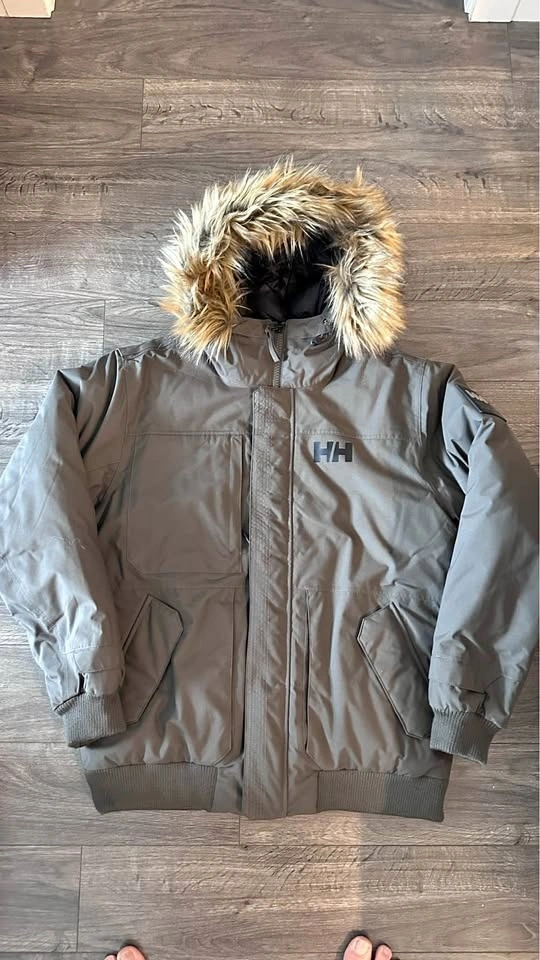 Authentic Helly Hansen Men's Barents Insulated Bomber Jacket in very good, lightly used condition. Only worn a handful of times – no rips, stains, tears, or heavy wear. Looks almost like new, with just minor signs of gentle use (e.g., light fabric creasing from storage). This is the real deal from Helly Hansen's trusted lineup – a shorter, hip-length version of their classic parka, built for serious cold-weather performance without the bulk. Key Features: Helly Tech® Protection – Fully waterproof, windproof, and breathable with sealed seams to keep you dry in rain, snow, or wind. Warm synthetic insulation (recycled polyester fill) – Excellent warmth-to-weight ratio, perfect for winter commutes, outdoor work, skiing, or everyday cold snaps. Adjustable hood with faux fur trim for extra coziness and style. Ribbed cuffs and hem to block out drafts. Plenty of practical pockets (including secure chest LIFE POCKET™ for valuables). Durable polyamide shell that holds up to real-world use. Reflective details on sleeves for low-light visibility. Super versatile urban explorer style – looks sharp but performs like serious outdoor gear. Originally $300–$400+ new. Smoke-free, pet-free home. Pickup in Richmond. Let me know if you're interested!
