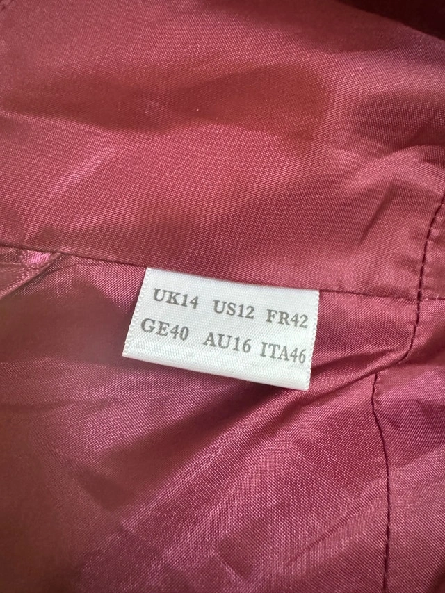 Worn only once. Size US 12 / EU 40. Cash only. Located in East London, ON near Hamilton Rd and Commissioners Rd. Cashless payment and cash accepted.